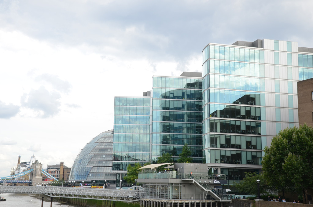图 从伦敦塔远眺泰晤士河,中部圆形建筑为市政厅大厦。