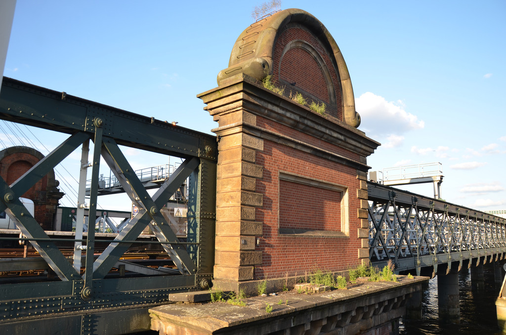 图 建成于1912年的萨瑟克桥位于坎农街铁路桥的上游,显得古雅隽永。泰晤士河北岸尖锋高耸的“奶酪刨” 大楼惟妙惟肖,敦实的 "空中花园” 大楼在古典桥头堡的映衬下尽显风采。