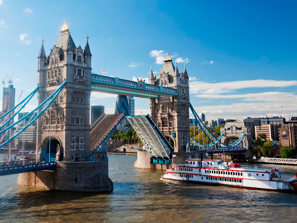 泰晤士河上最受欢迎的桥莫过于伦敦塔桥,经典的尖顶城堡建筑与蓝白色的索道成为了伦敦的标志,桥上可行走、通车,特别之处在于它还是一座开启桥,每当有大型船只途径时,中间的桥板就会打开,在游船上能够近距离观察到这一壮观景象。
