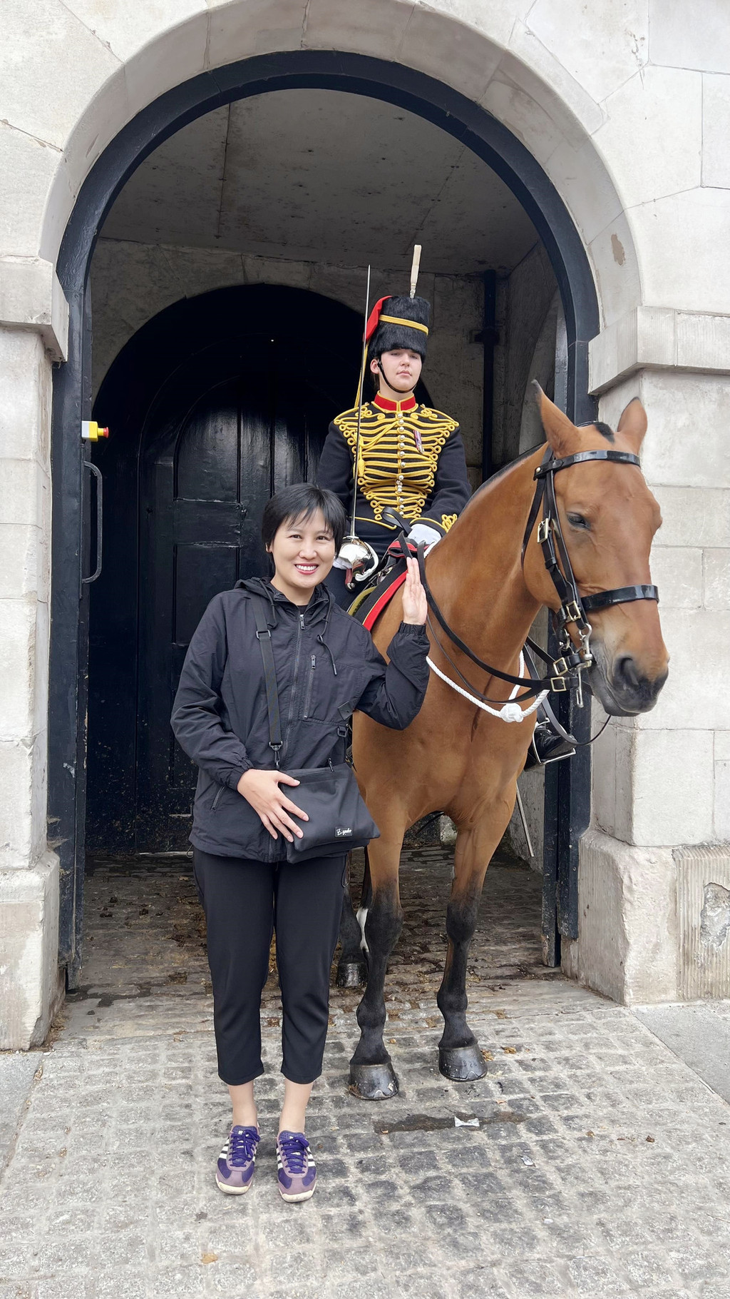你会看到女王护卫队,我没有胆子去摸马,哈哈,不过很多人都摸了,欧洲人胆子比较大,还去挠马的下巴。骑士小姐姐显然性格非常Nice.