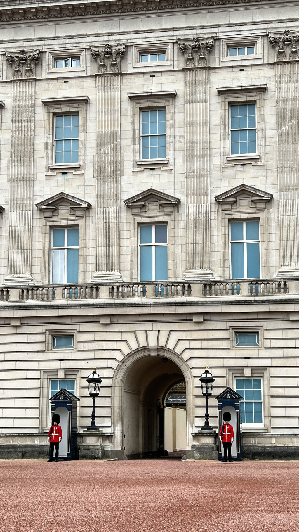司机兼导游Oscar&邹师傅准时在我们下榻酒店门口等候。 伦敦的街道已使用了几百年,因此马路狭窄,哪都是双车道,所以红绿灯特别多,十几米就有一个,特别堵! 一路上司机给我们介绍起了美丽而古老的英国首都一一伦敦。Oscar相对比较安静和理性,邹师傅特别健谈和质朴,深受女团员们的喜爱。我们的7座中巴车在路上行驶的战战兢兢,很多地方不能随便停车的。抵达白金汉宫附近时,雨停了,依稀可以看到太阳要努力钻出云层迎接我们。