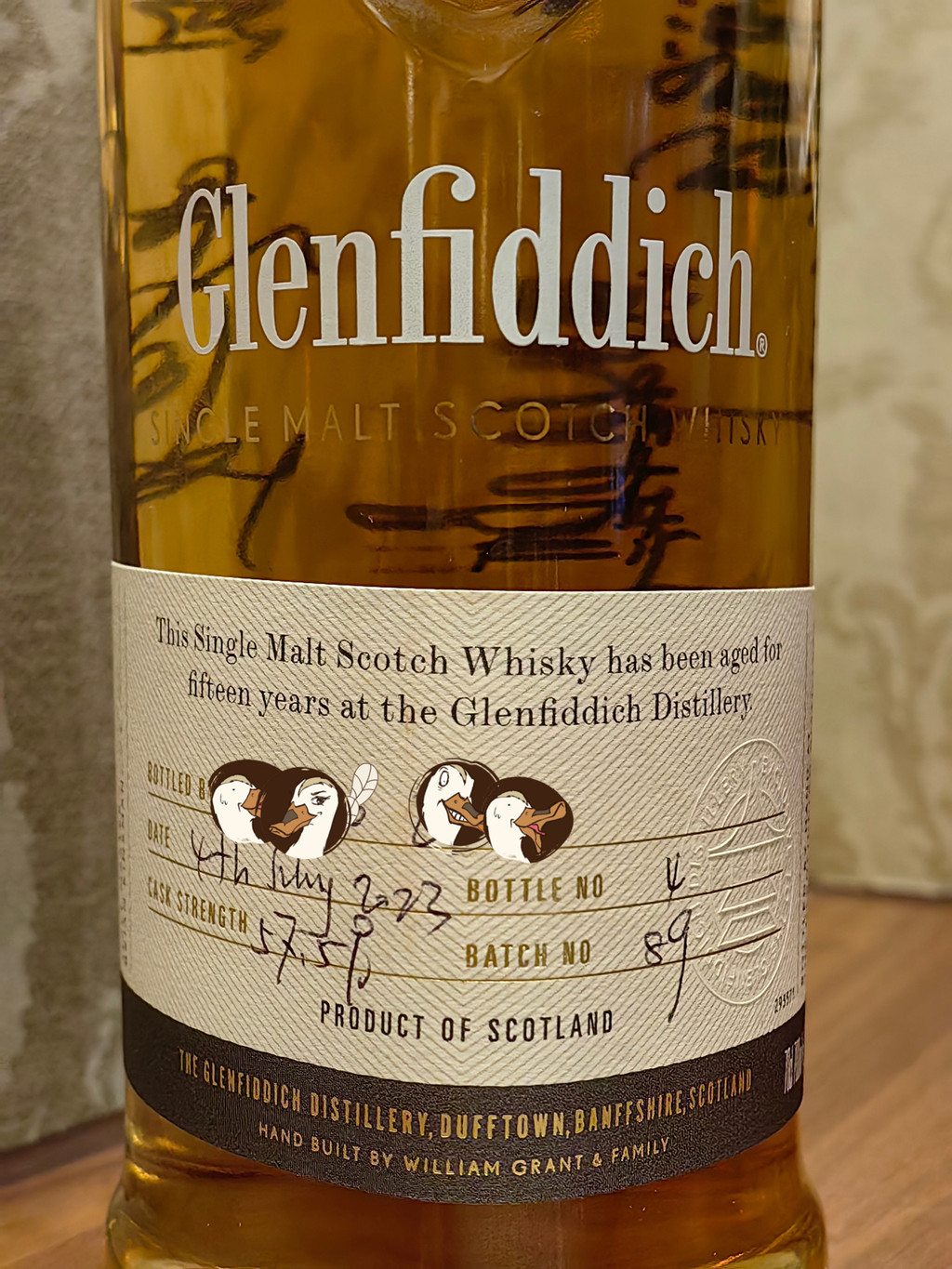 惊喜从这里开始,我很幸运今天过生日,老板特别在格兰菲迪罐装了一瓶15年的威士忌送给我,仪式感满满,亲手罐装,记录,写标签,封口.... 最后同伴们在酒瓶上签满了名字送给我。