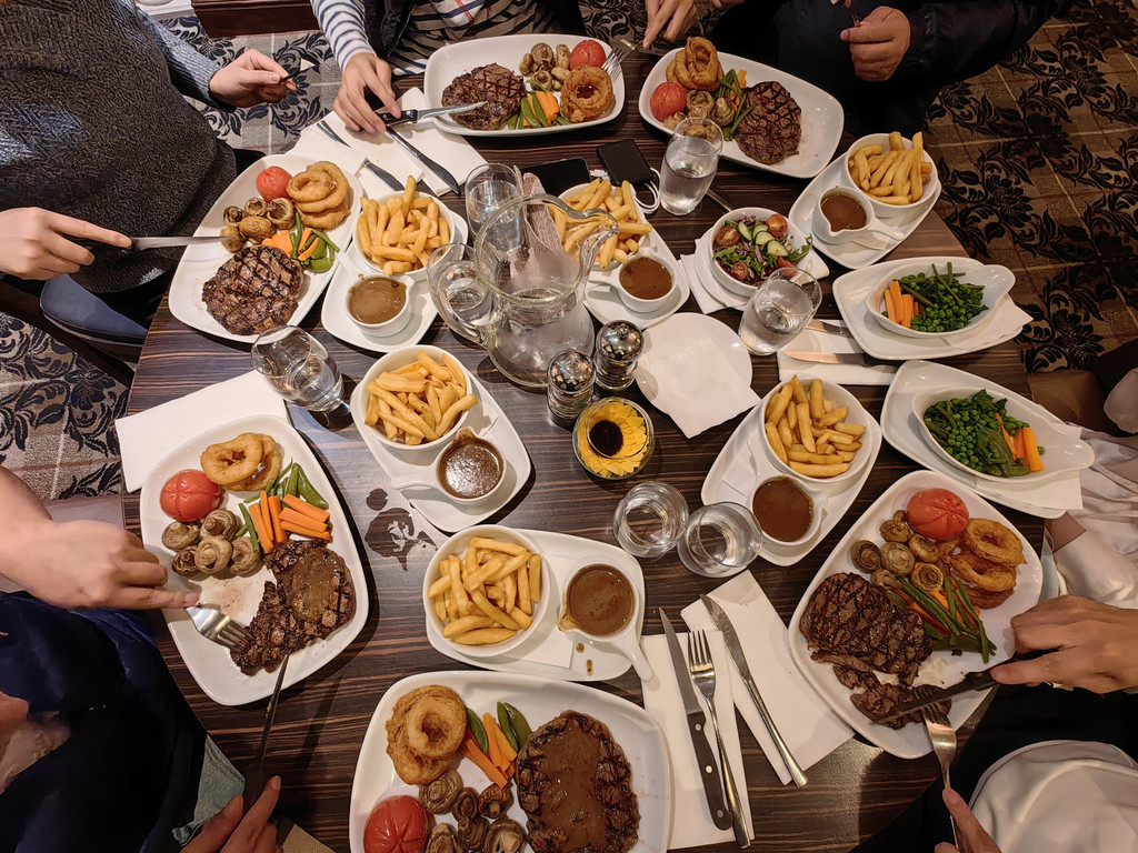 在大英博物馆里驻足了3个小时,很快到了集合时间,只能悻悻而归。此时我们有另外一队在逛牛津街,提醒我们牛津街太像厦门的中山路了,于是乎我们放弃了牛津街,赶回酒店集合。因为路上实在太堵车了,我们沿路买了Pizza 汉堡饮料,晚上就在入住的酒店餐厅聚餐。此时,大家已经开始感到有点旅途疲惫了。还有人7个小时的时差没有倒过来。