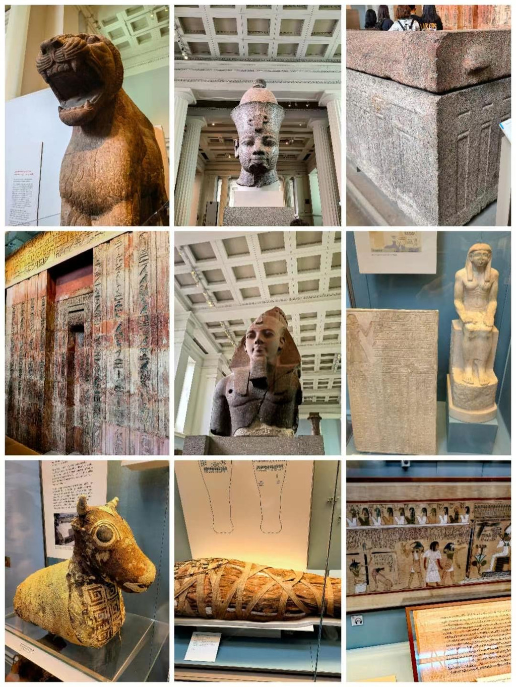 埃及馆中的木乃伊让我印象深刻。装在棺材里木乃伊,拆掉木棺材只是被布包着的木乃伊,布都拆了的木乃伊骨头上还有肉,大人的,孩子的。英国人还真的是贼不走空,走到哪里都要把人家的东西拿回自己家里摆呀。