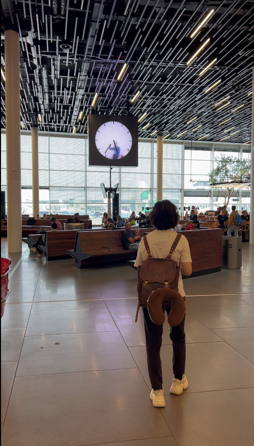 出国必买厦航机票,厦门-伦敦,全部飞行距离9700多公里,先飞到荷兰阿姆斯特丹史基浦国际机场Schiphol,之后再转机英国伦敦希斯罗Heathrow机场。经过12个小时的飞行后,在史基浦机场经停2.5小时,史基浦最经典的打卡点就是这个大钟了,其每隔一分钟会把指针擦掉又重新刷上去。