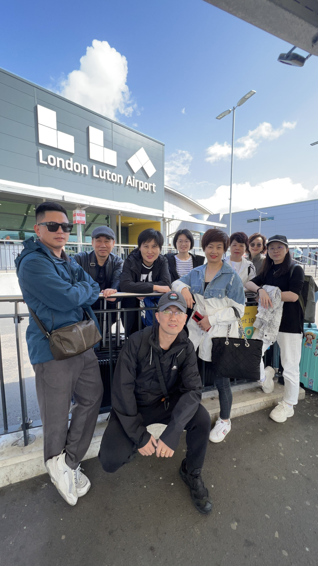 第二天早上离开伦敦,在卢顿机场门前的“到此一游”合照