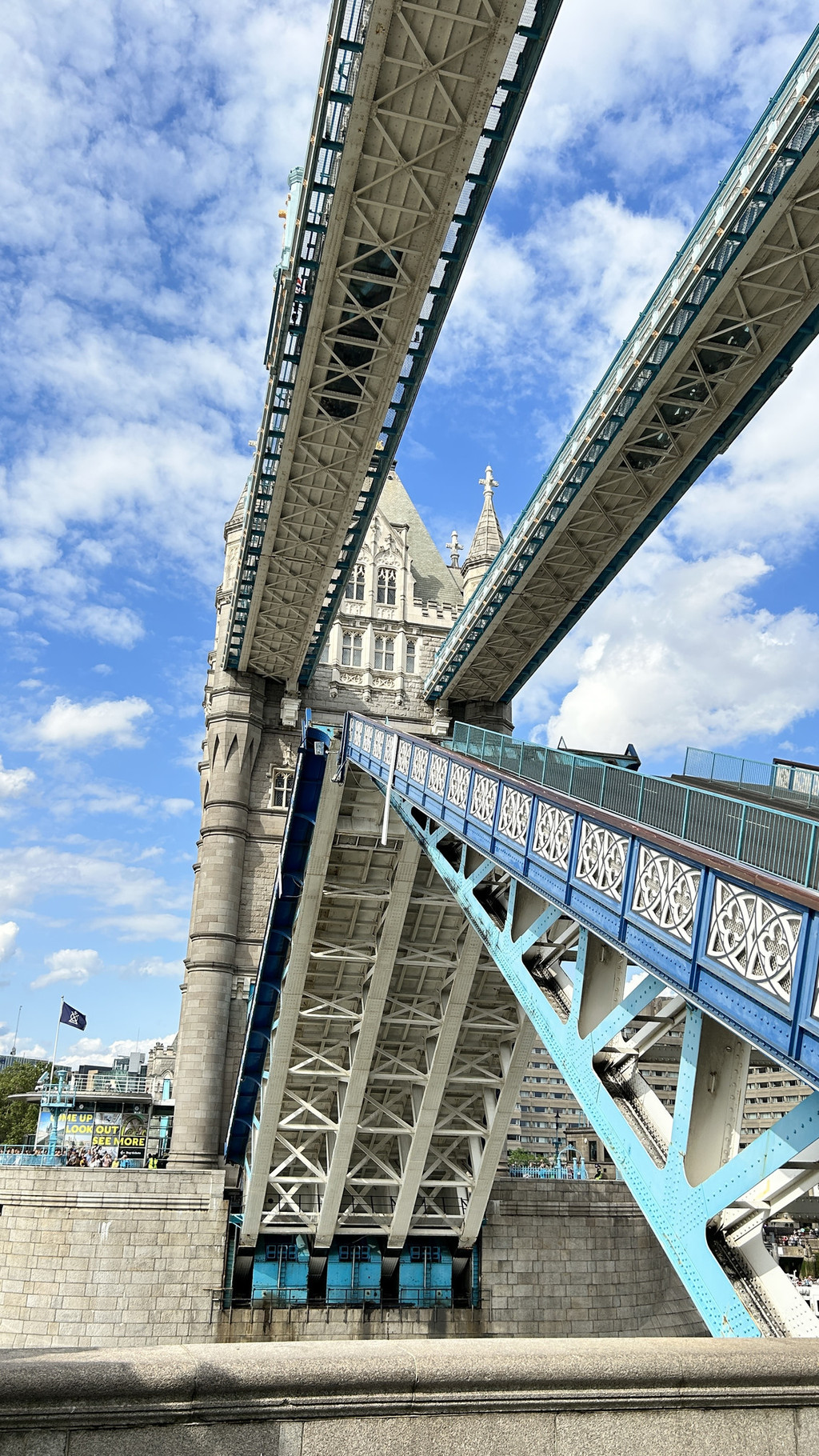 当我们行至塔桥中央的时候听到了悦耳的铃声,这个铃声是通知将有船只通过,伦敦塔桥将要开启。据说游客要很幸运才会偶遇塔桥开启,Oscar得知我们碰到了,还小惊讶了一阵。小插曲是塔桥闭合的时候费了一番功夫,估计操作员是个新手,两侧等候的人群并没有指责,反而在成功合上塔桥的时候,人群中发出了赞美的声音。
