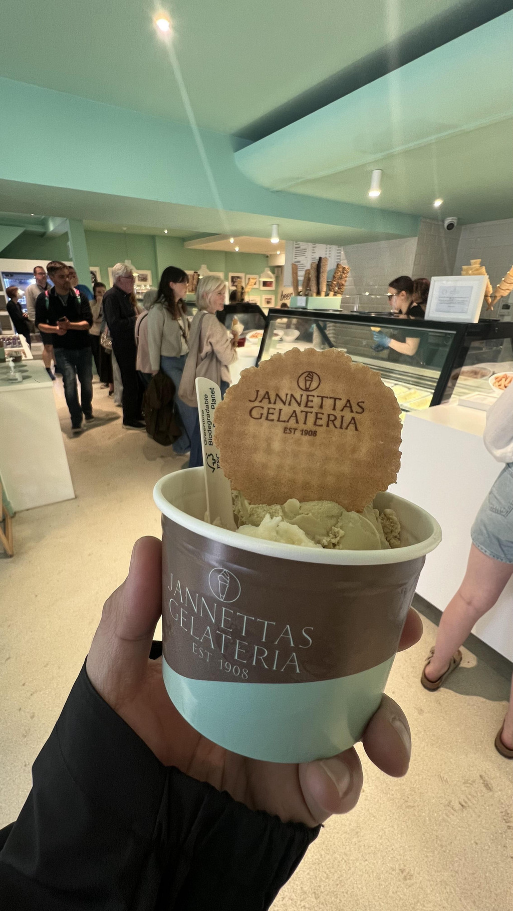 之后,排队品尝了这家全世界最好吃的冰淇淋。 Jannettas Gelateria