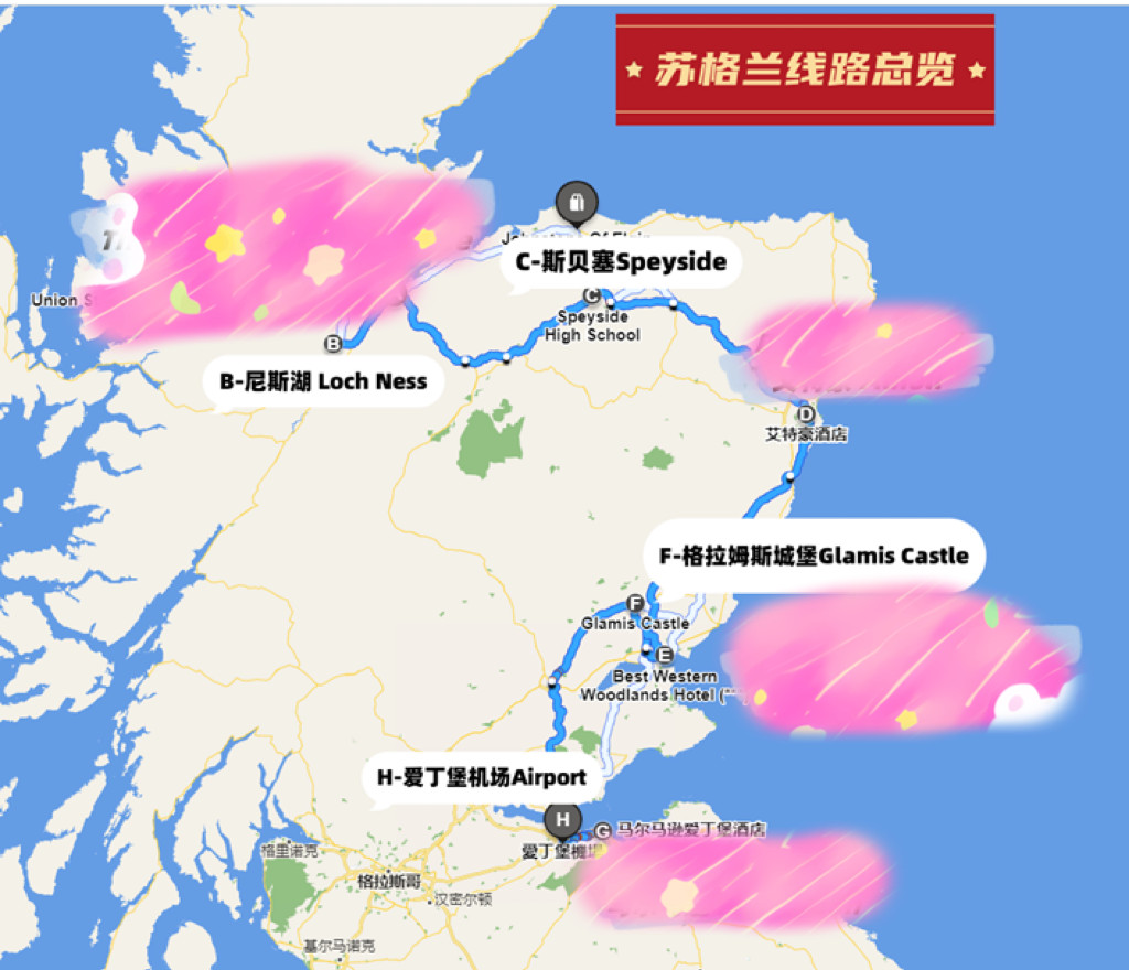 先来看一下我们在苏格兰的行程轨迹,真正的威士忌之旅拉开帷幕。