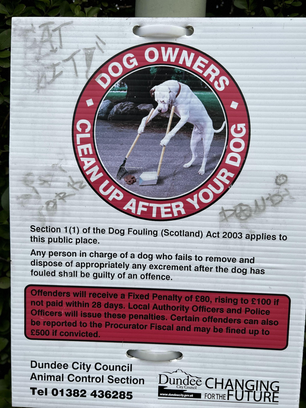 在邓迪,主人不收拾狗狗的粪便是违法的,一次罚款80英镑。