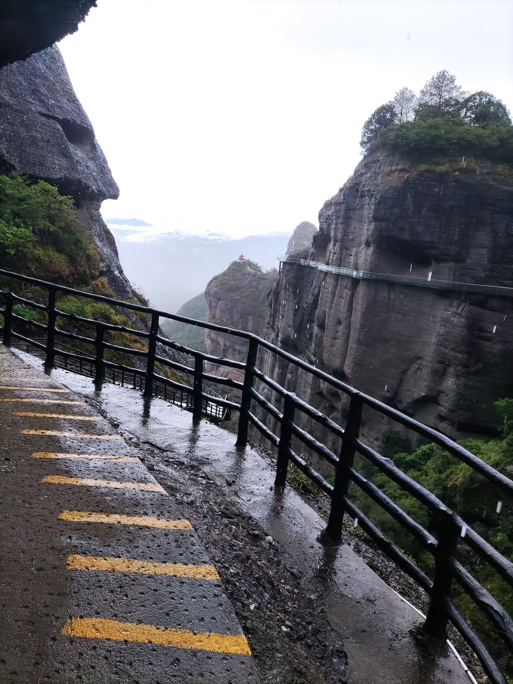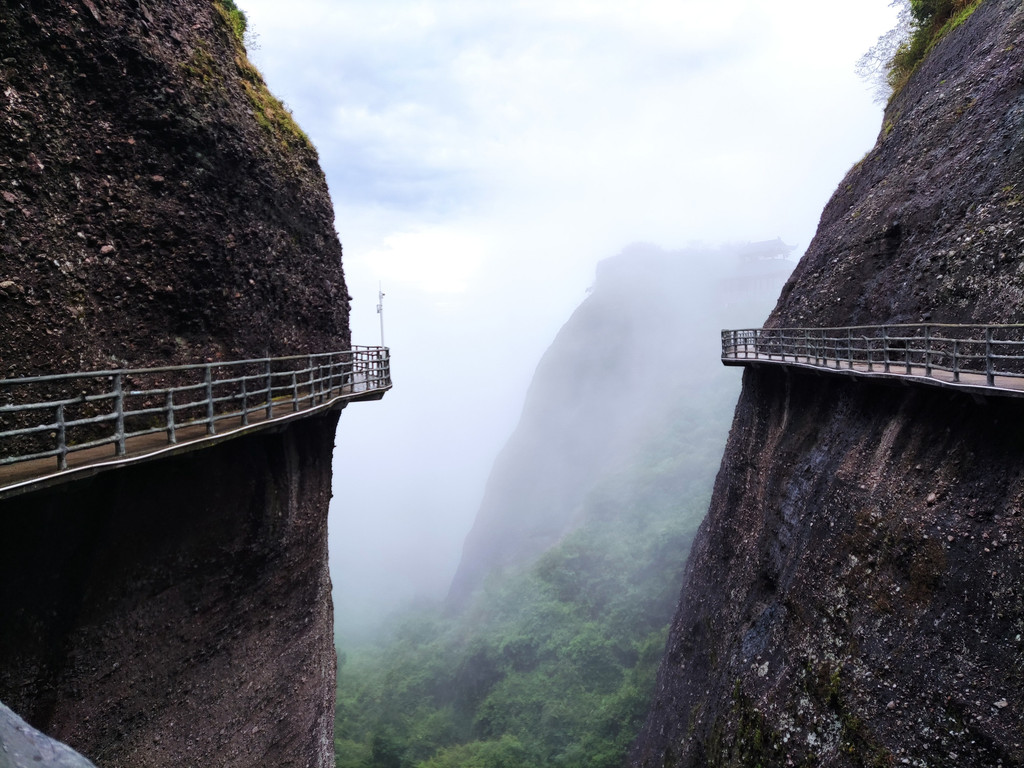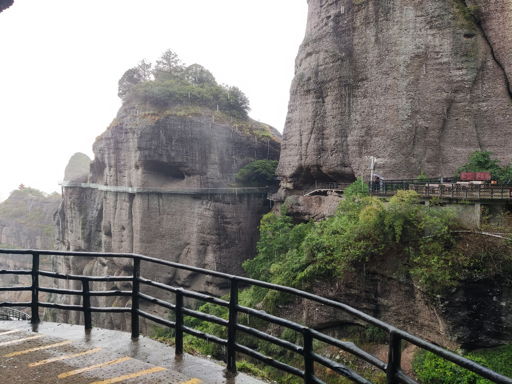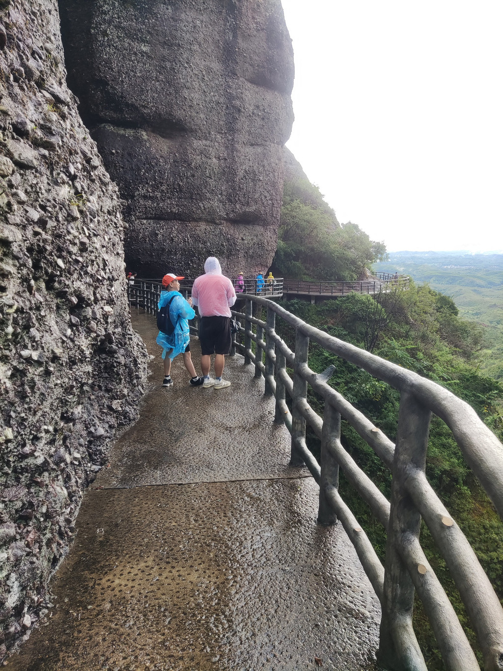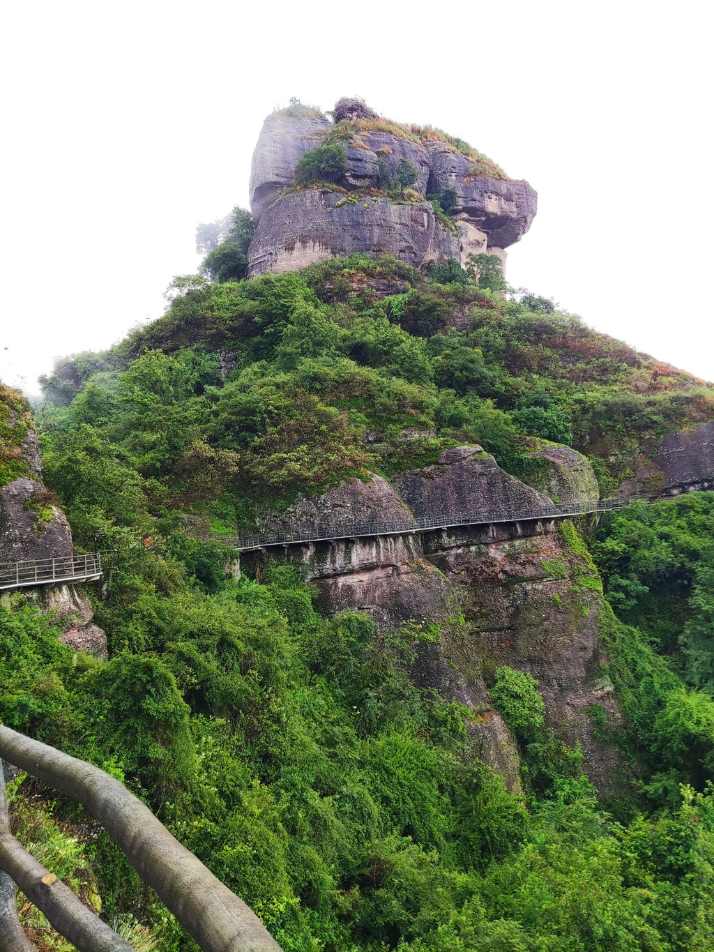 霍山的旅游路线还是挺合理的,不走回头路。可以走完每一道栈道,欣赏每一处的霍山美景。霍山的最高点在船头石,就是走完玻璃桥以后的那个地方上去,大约走不到10分钟的路程就可以到达山顶。我没有去到那个地方。因为我准备登顶的时候狂风暴雨,下雨就算了,还电闪雷鸣,上最高峰会有安全问题。