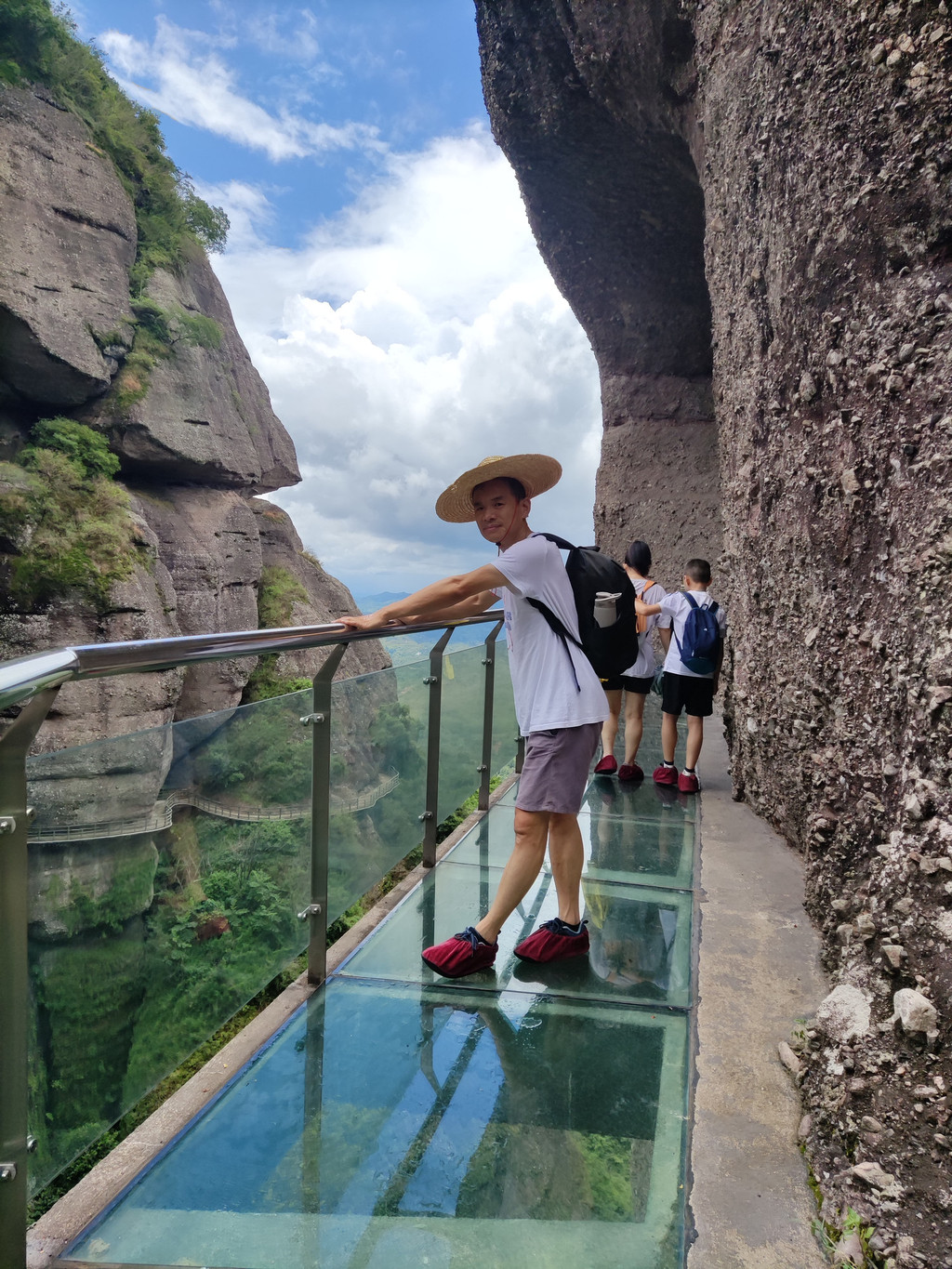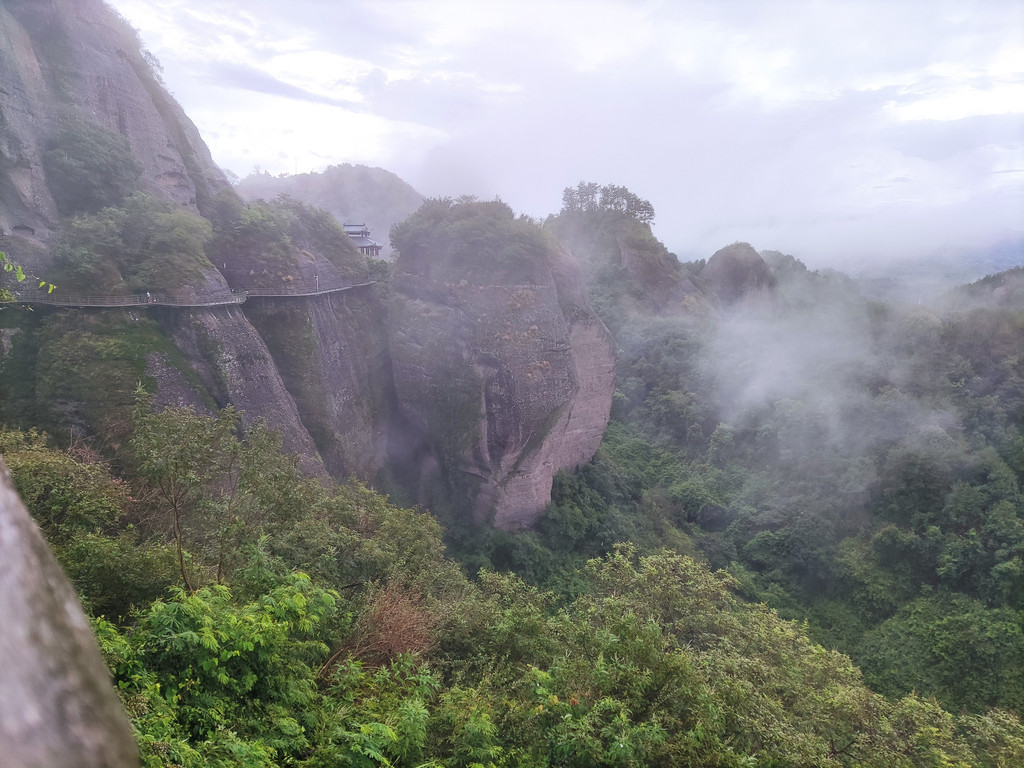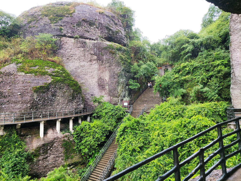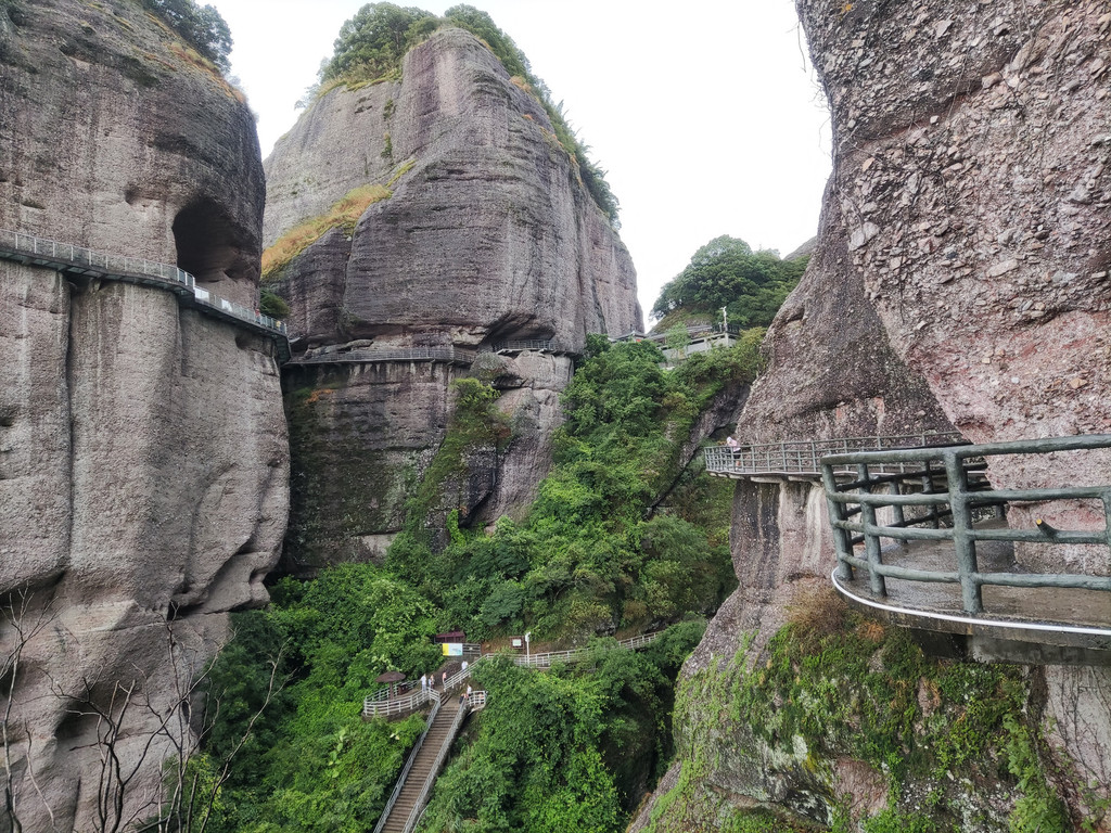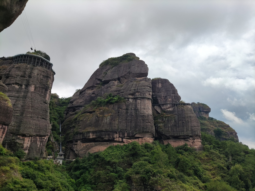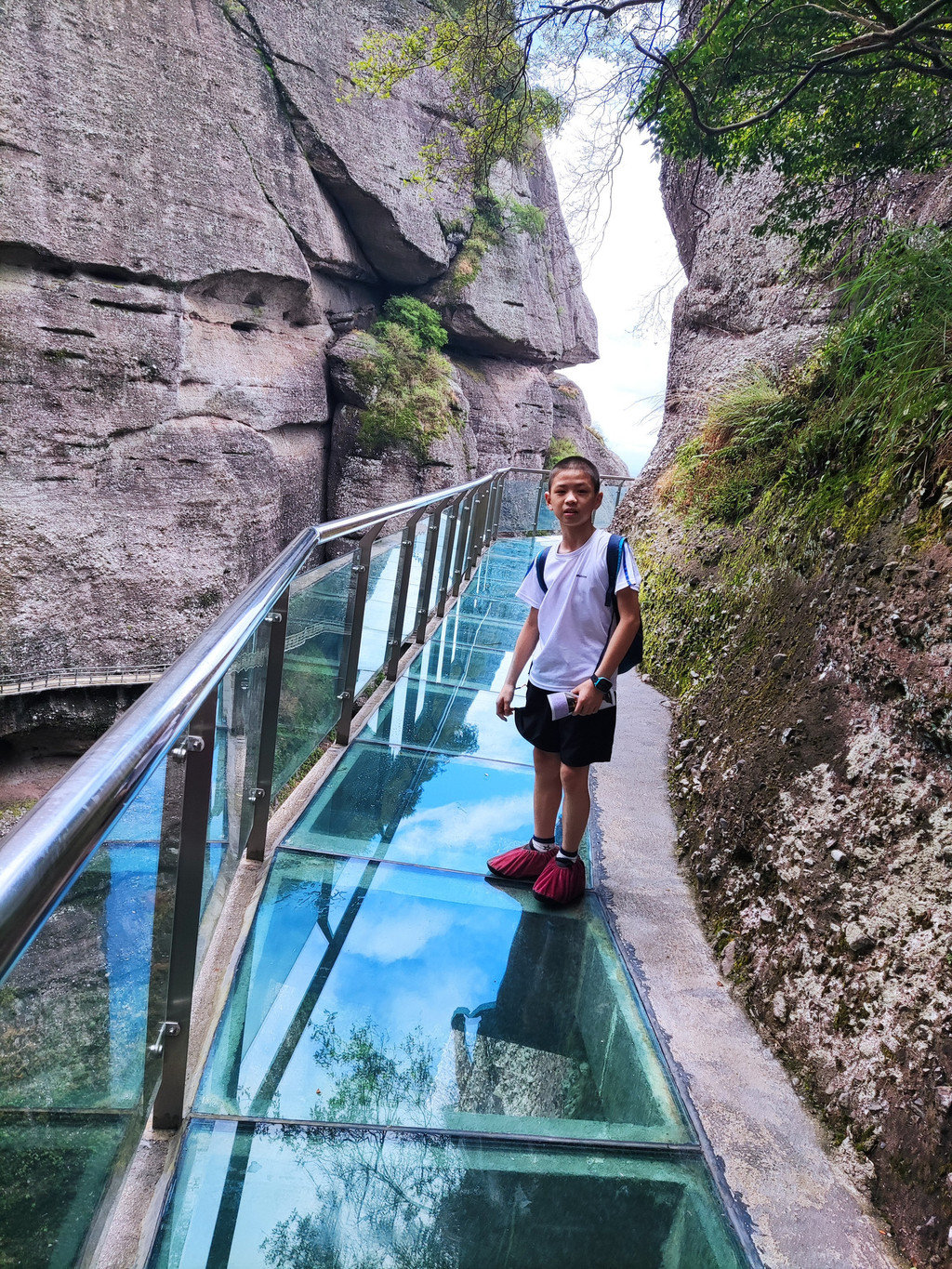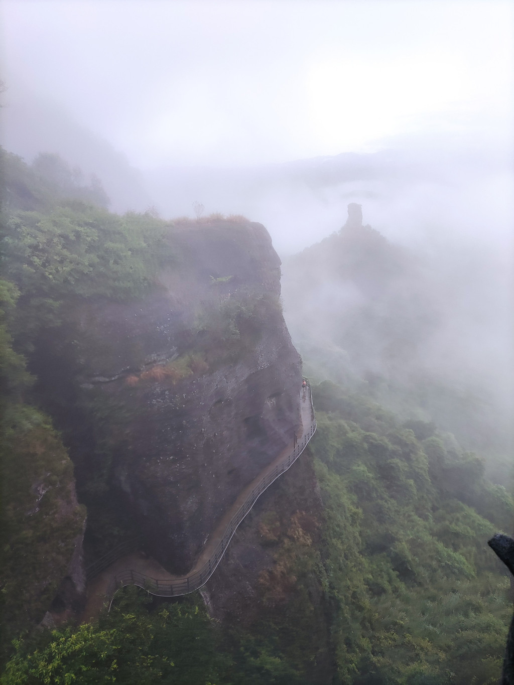 霍山的旅游路线还是挺合理的,不走回头路。可以走完每一道栈道,欣赏每一处的霍山美景。霍山的最高点在船头石,就是走完玻璃桥以后的那个地方上去,大约走不到10分钟的路程就可以到达山顶。我没有去到那个地方。因为我准备登顶的时候狂风暴雨,下雨就算了,还电闪雷鸣,上最高峰会有安全问题。