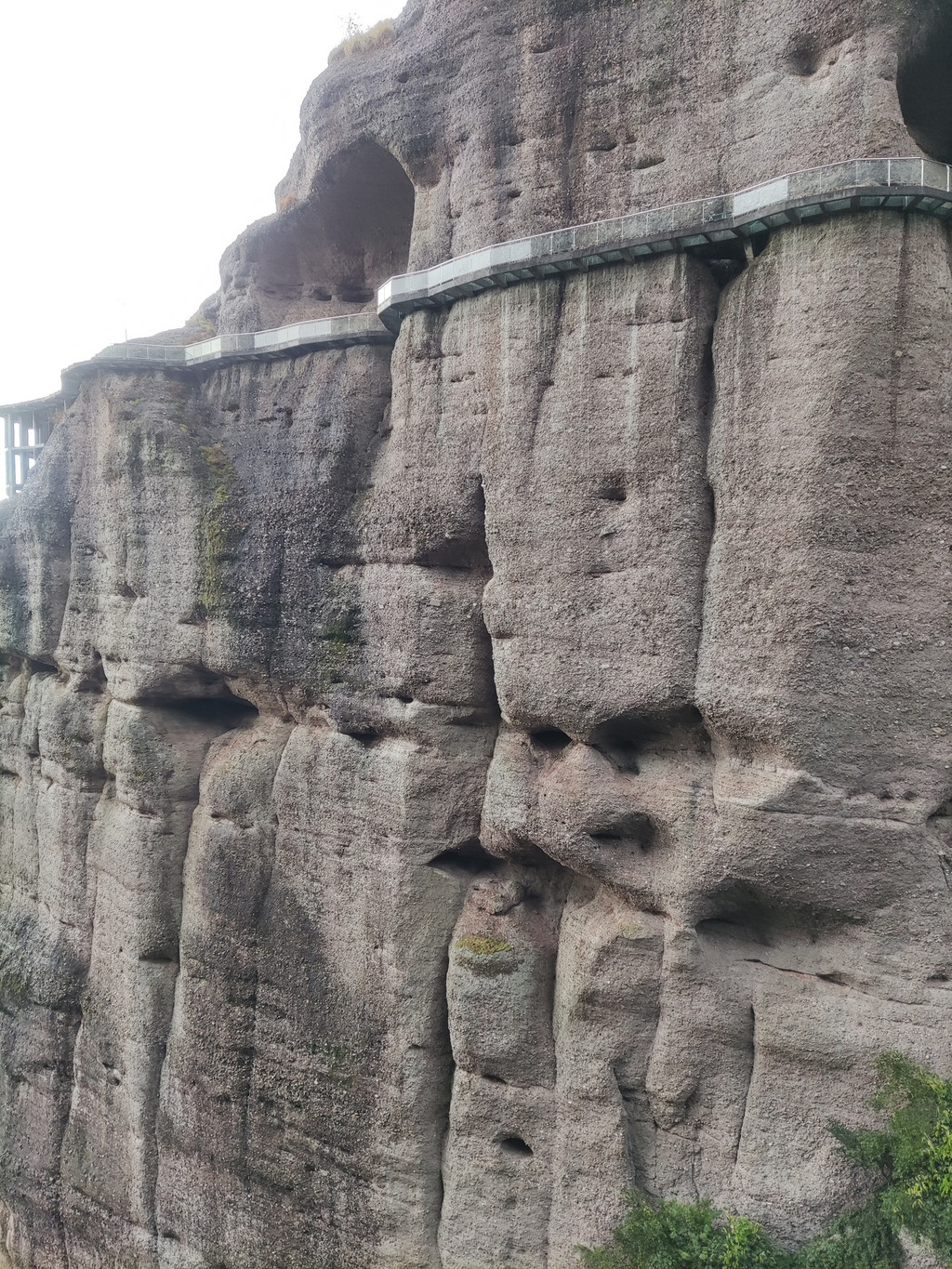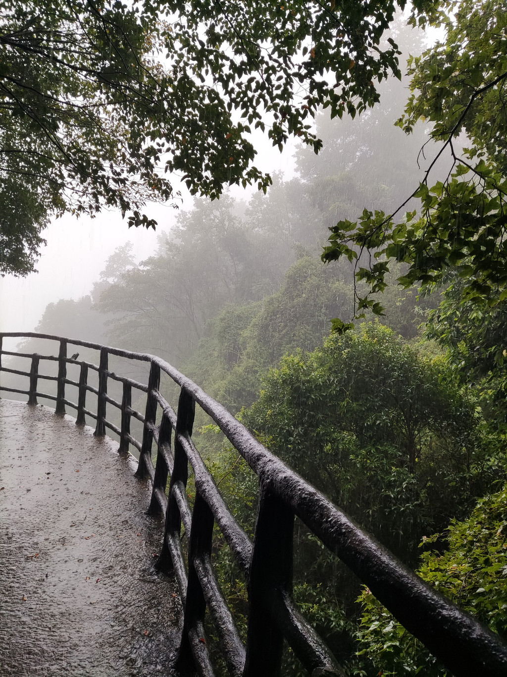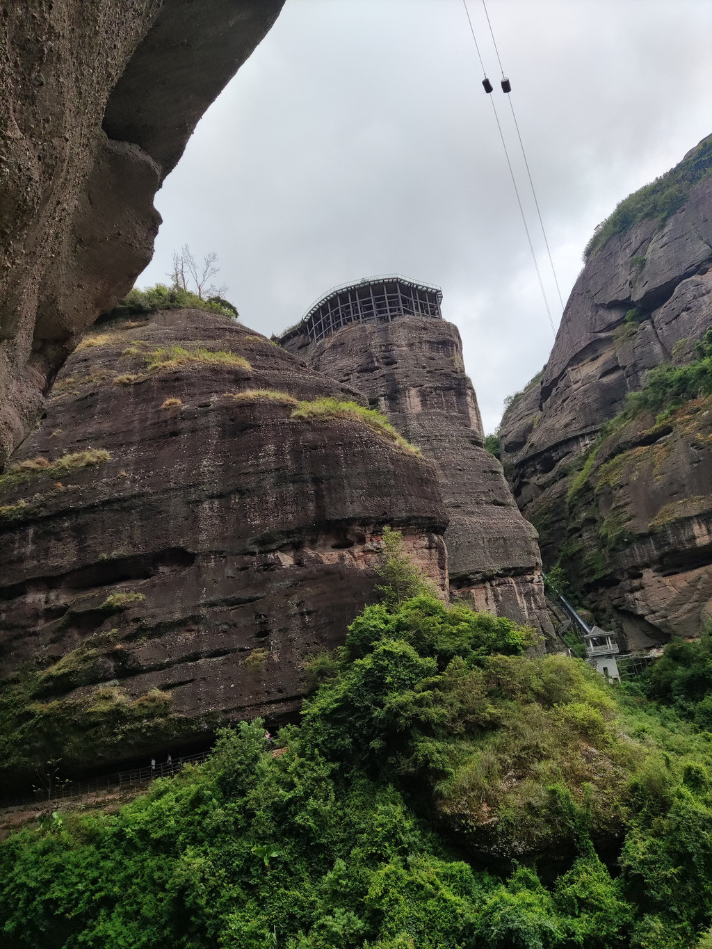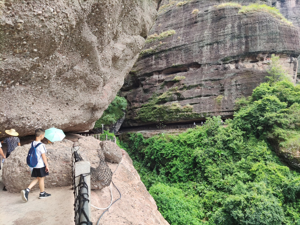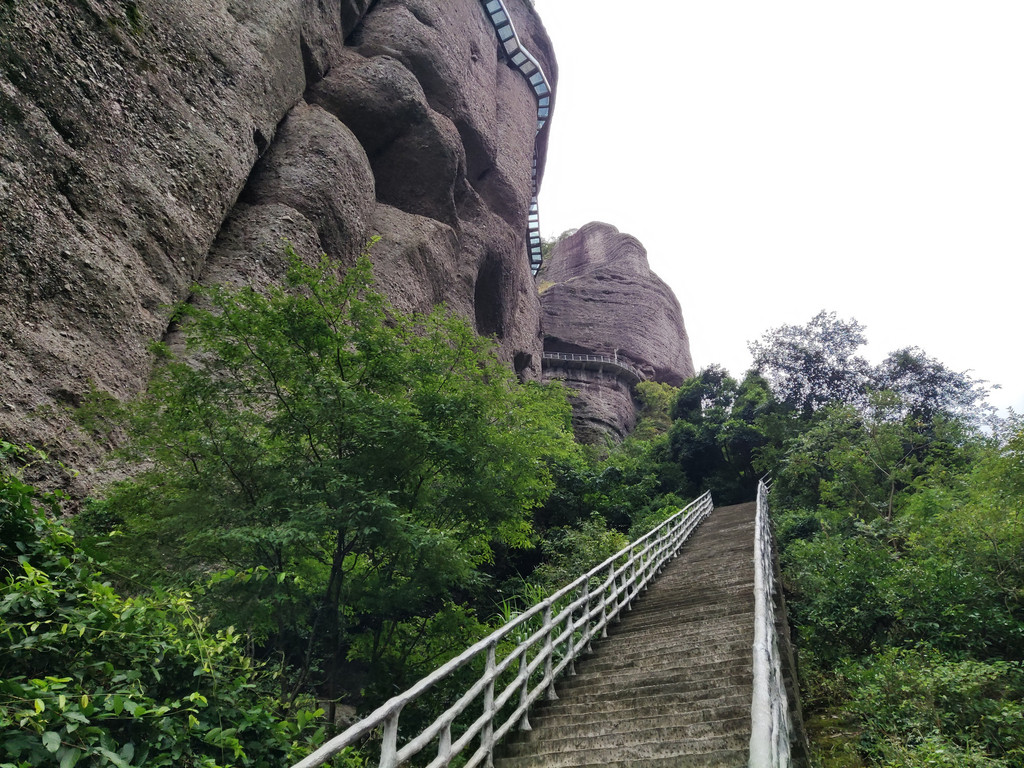霍山的旅游路线还是挺合理的,不走回头路。可以走完每一道栈道,欣赏每一处的霍山美景。霍山的最高点在船头石,就是走完玻璃桥以后的那个地方上去,大约走不到10分钟的路程就可以到达山顶。我没有去到那个地方。因为我准备登顶的时候狂风暴雨,下雨就算了,还电闪雷鸣,上最高峰会有安全问题。