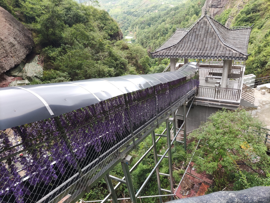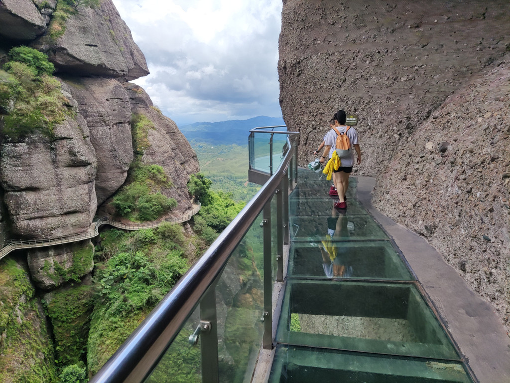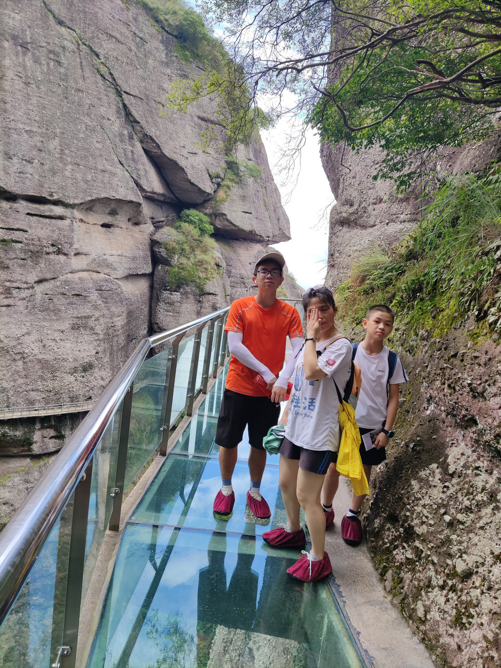 魔毯出来以后就准备走玻璃栈道了。玻璃桥要另外收费的,我买的是套票,已经包含玻璃栈道。验票以后穿上鞋套上桥。那个玻璃栈道虽然不长,但是好高啊,非常高,看得我好怕怕,心惊胆跳啊。