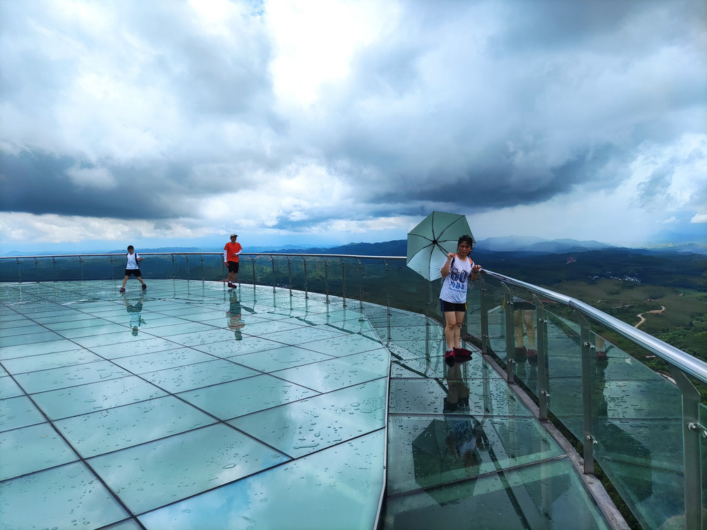 玻璃城,左边应该是有破碎效果的玻璃,因为正逢下雨,所以没有开。