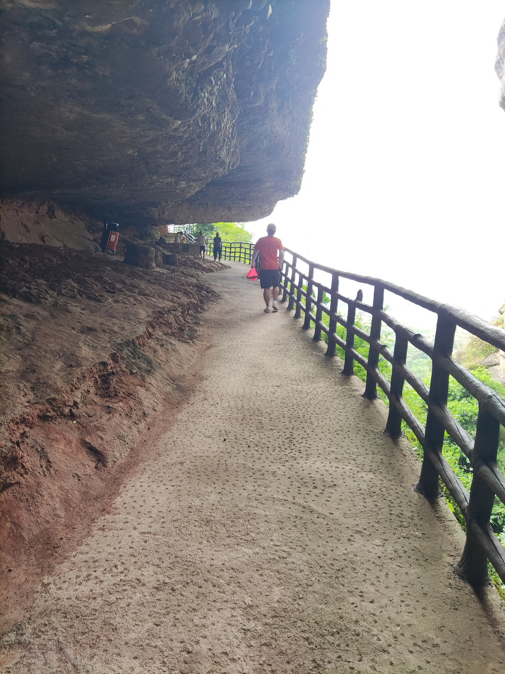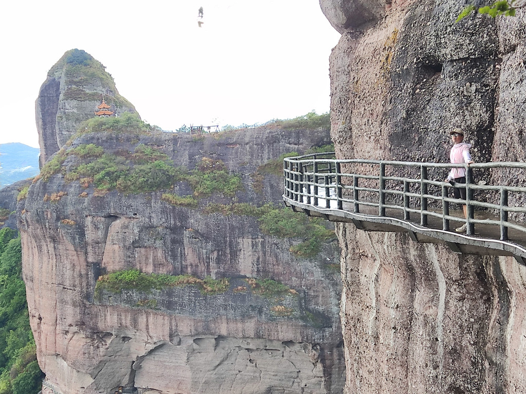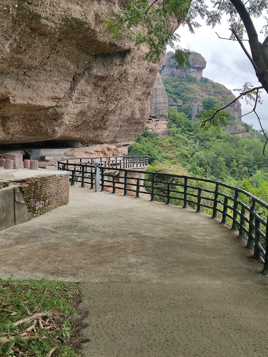 左边是庙,右边一个思乡亭,我们是往前走,售票处有地图,那里有参观道路指引。进入景区随处可见丹霞地貌,一座座直立耸起的小山展现在你的眼前。