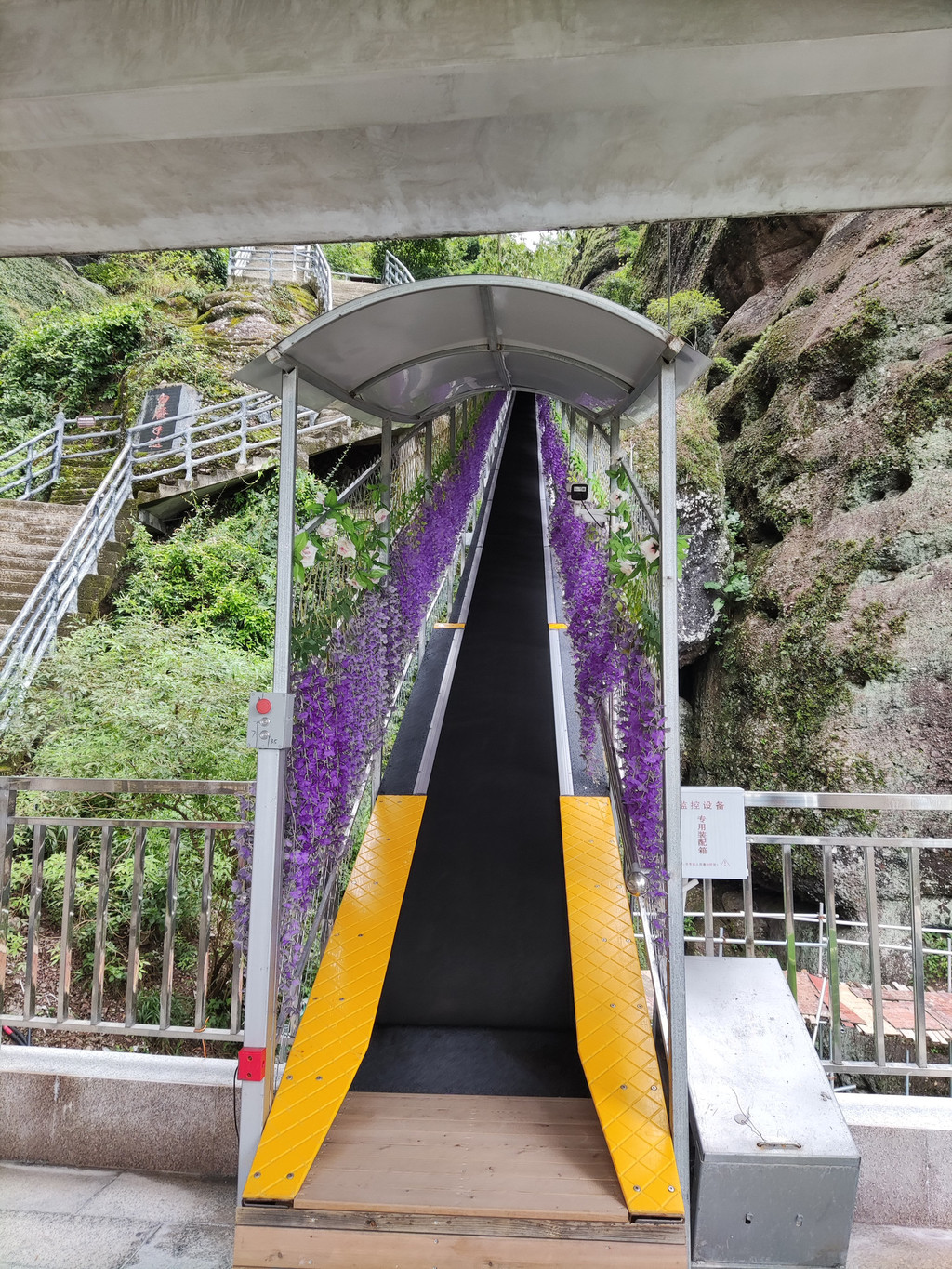 走着走着我们就到了园中景区——魔毯,这个项目要另外收费的。就是人坐在毯子上,然后运送上山,免得爬陡峭的台阶了。这个适合老人和较小的孩子,普通人就没必要了,也不太好玩,因为走路也没多少台阶。