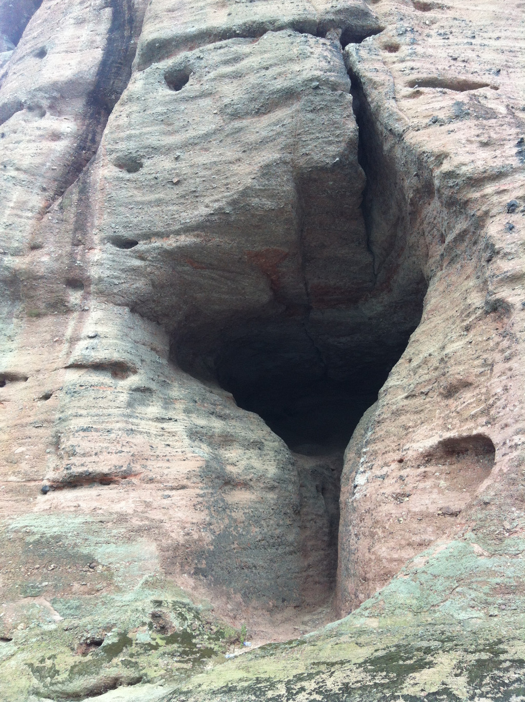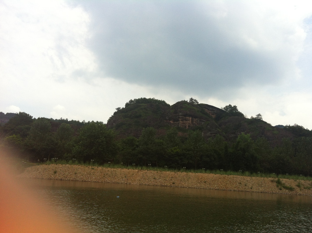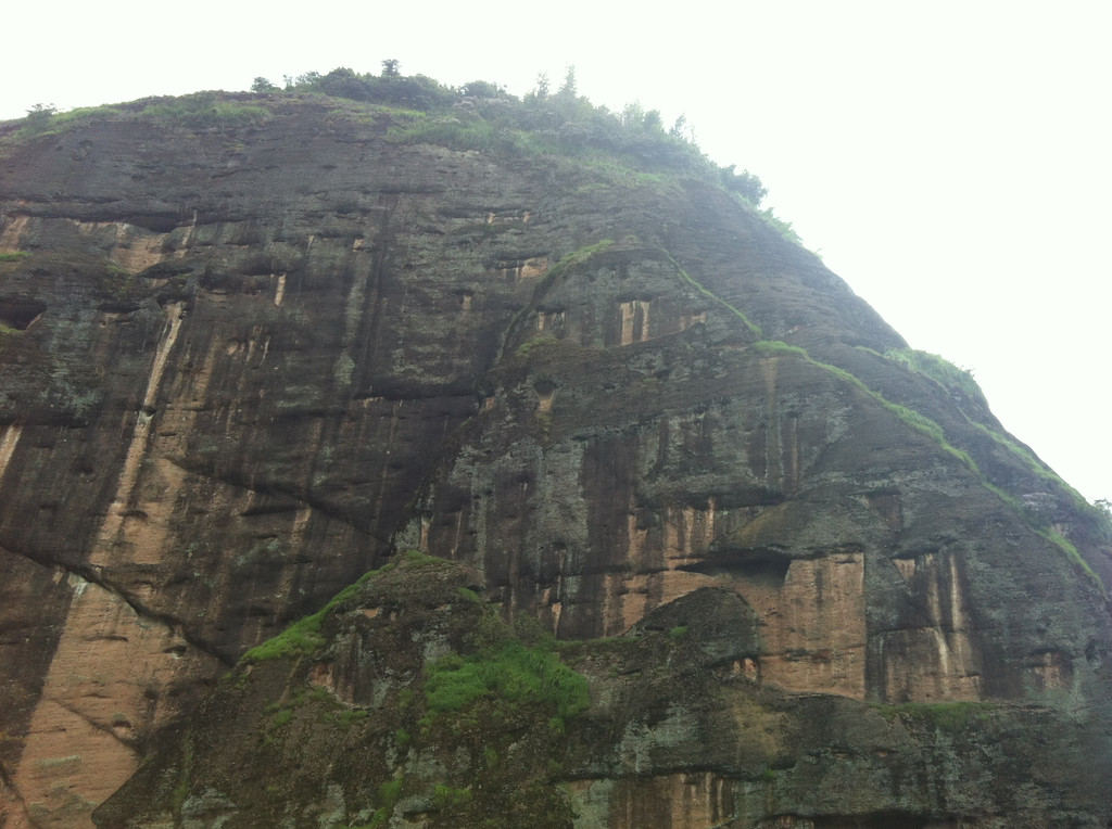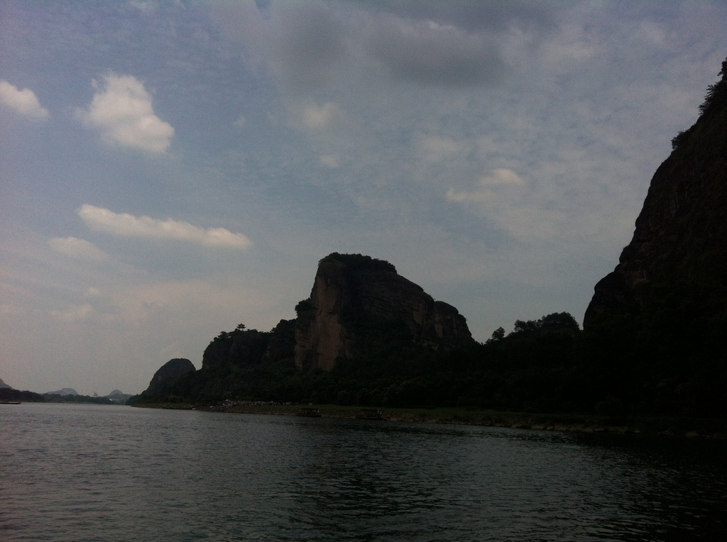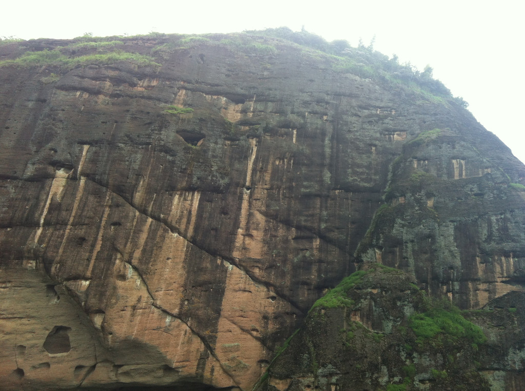 两岸的岩石裸露出来,丹霞地貌就是被流水、风水等风化侵蚀,形成了红色的砂砾岩层。这些岩层形成了各种姿态的奇石和石洞,至于像什么,那也是听了介绍再想像一样而已。据说有一块五彩山峰壮丽若云锦,原来的龙虎山名叫云锦山,这个名字也挺好听。我们一路上也用心观察了,也不知道是不是看到的那一块岩壁。大概是先入为主的原因,反正看着都觉得挺像云锦的。