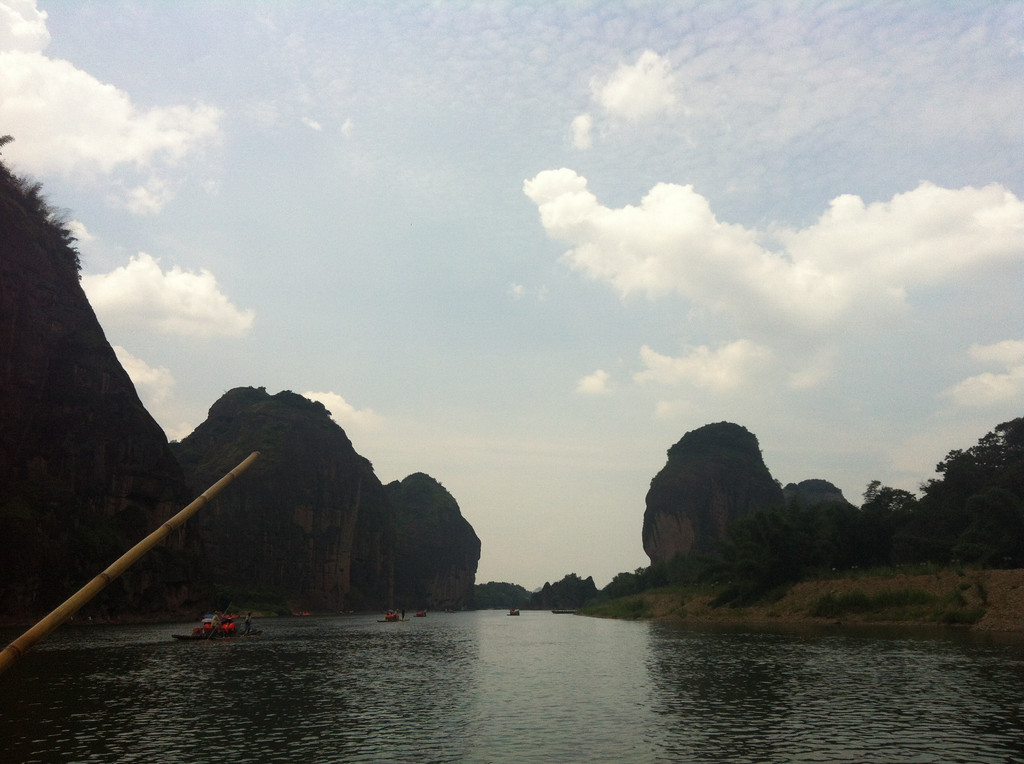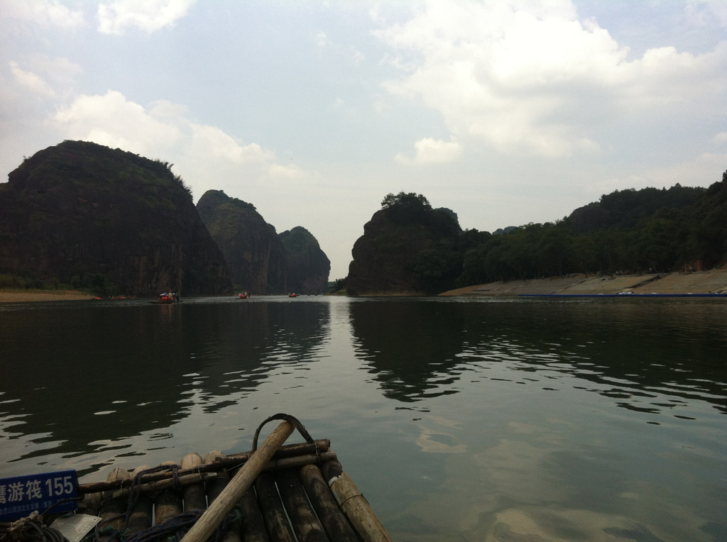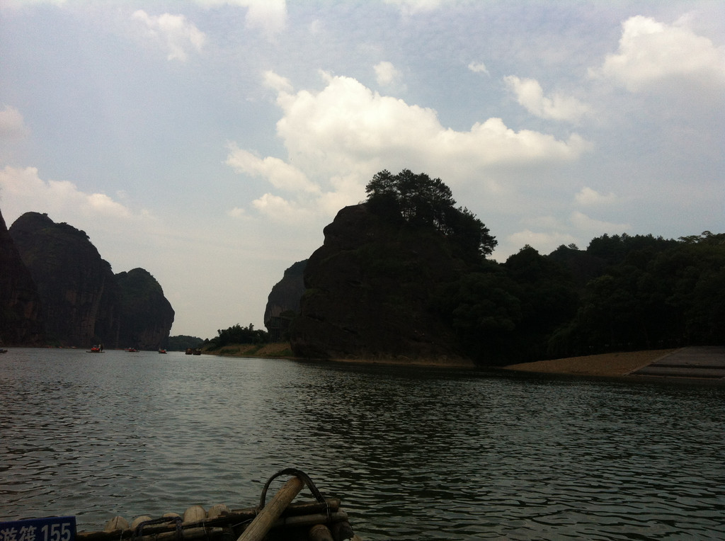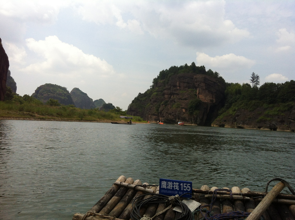 说起乘坐竹筏的体验,我们已经有好几回了,浙江和福建的景区有很多乘坐竹筏的项目,有的惊险,有的则比较平缓。看起来,龙虎山的水流比较平缓,应该谈不上惊险,只是顺水而下饱览两岸风光罢了。