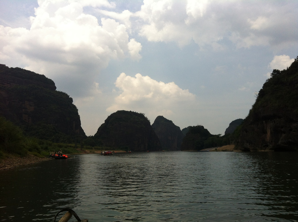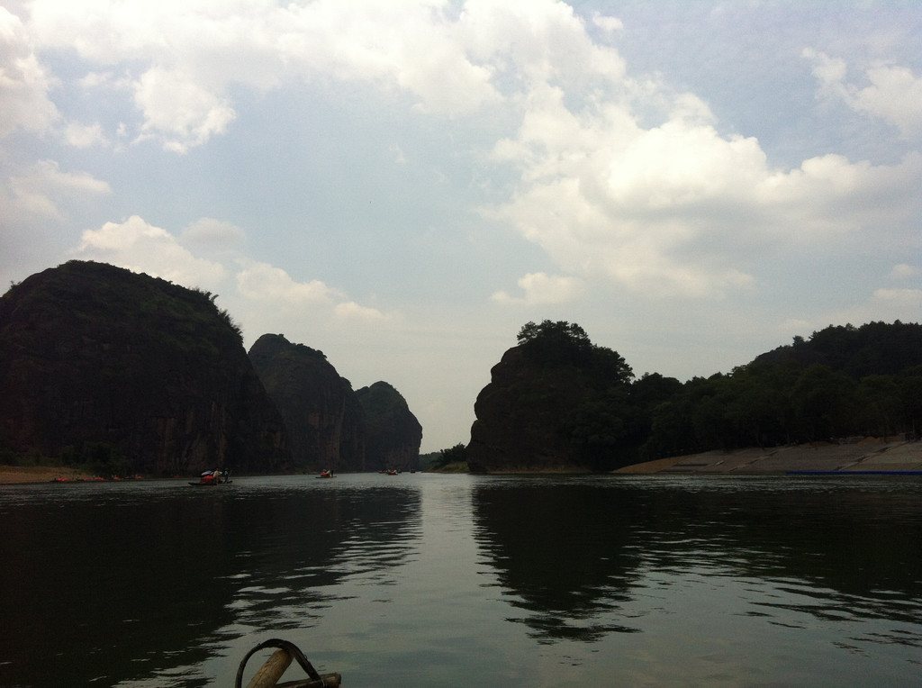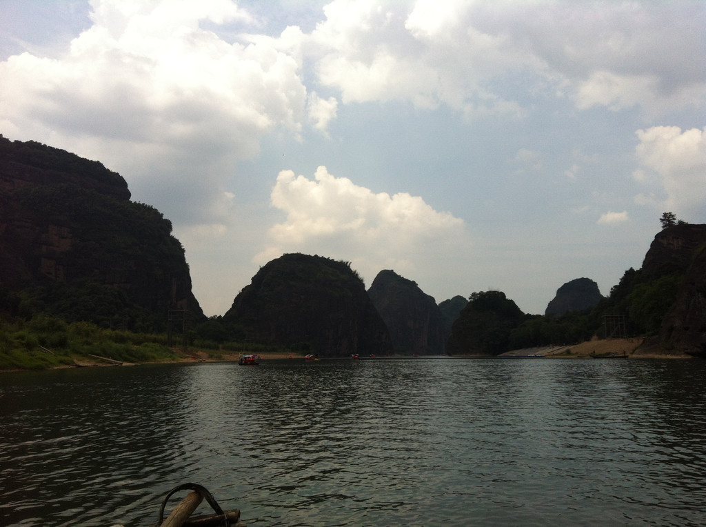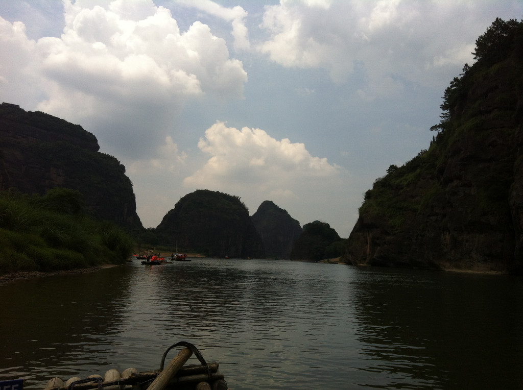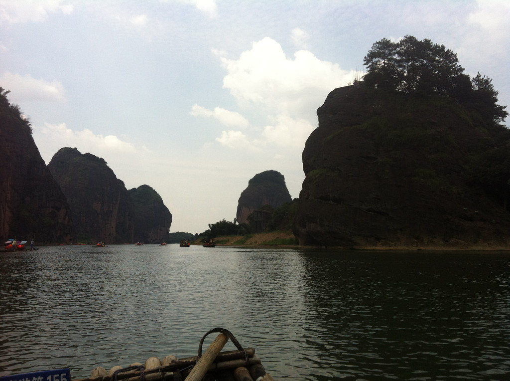 说起乘坐竹筏的体验,我们已经有好几回了,浙江和福建的景区有很多乘坐竹筏的项目,有的惊险,有的则比较平缓。看起来,龙虎山的水流比较平缓,应该谈不上惊险,只是顺水而下饱览两岸风光罢了。