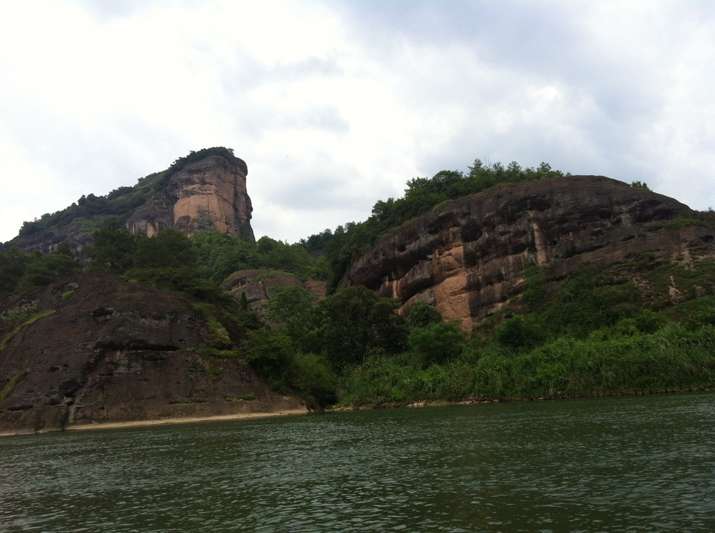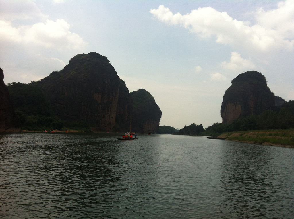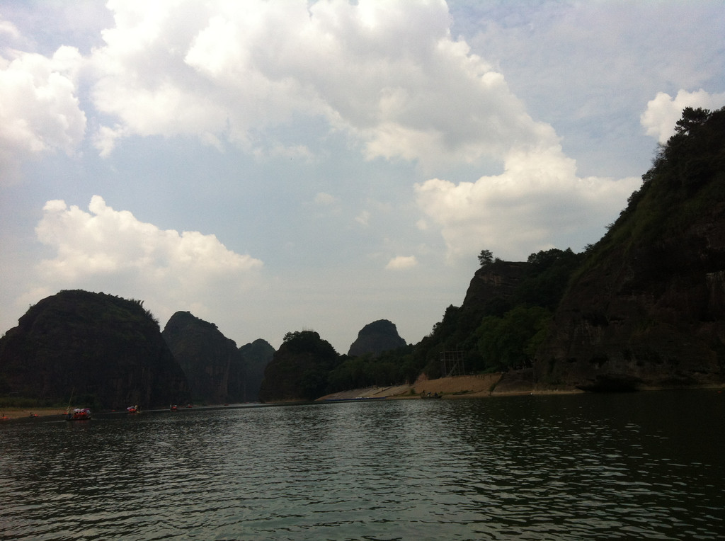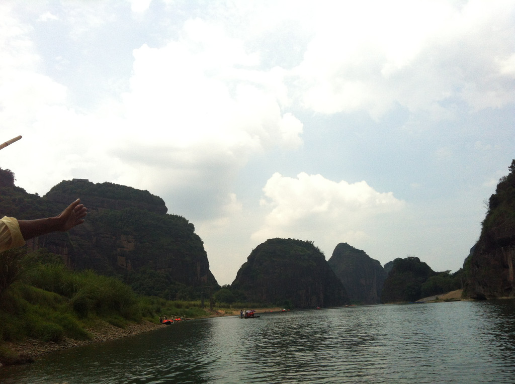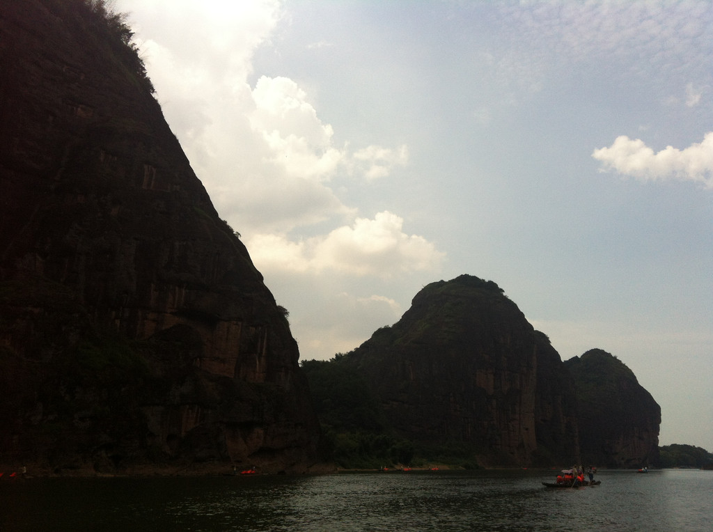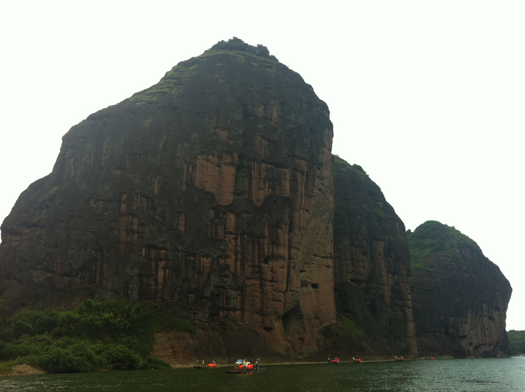 河水很清澈,一路上的凡霞地貌确实千姿百态,虽然私以为比不上福建泰宁,但也颇有可看之处。二十里山水如同一幅徐徐在眼前打开的画卷,秀丽的江山就如同被天然的画笔勾勒出了轮廓,这也是龙虎山的三绝之一“碧水丹山”。其实水并不是碧绿的,山倒真是丹色。