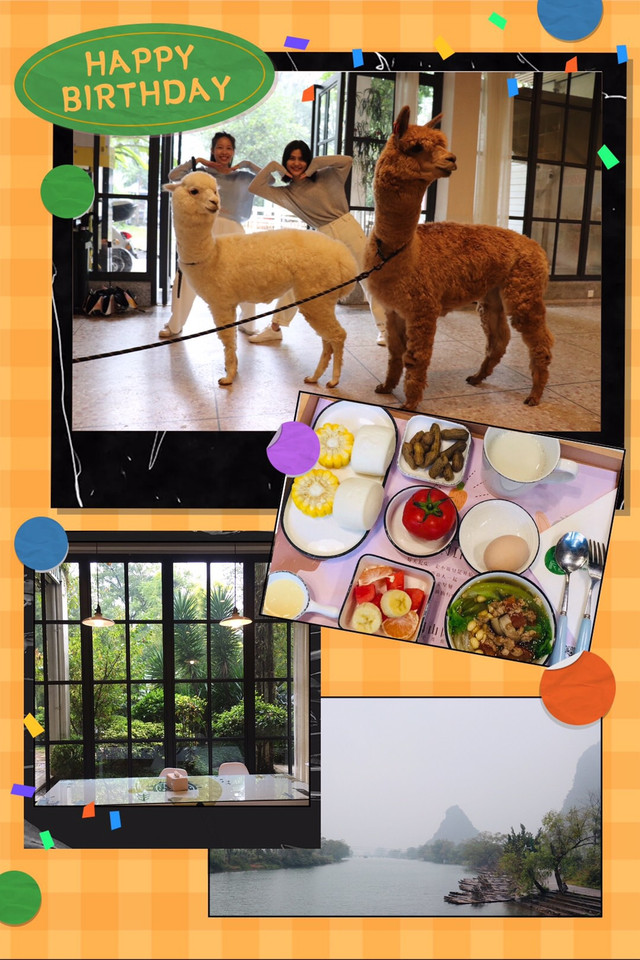 因为下雨只能在民宿里喂羊驼,拍照。遇龙河附近游竹筏,观看桂林千古情都很方便,距离很近,如果不下雨都可以考虑观赏。最后回程,遇龙河到阳朔高铁站,车程大概1个小时,去阳朔高铁站会经过兴坪古镇,阳朔高铁站距离兴坪古镇大概8公里,如果不赶时间,也可以在兴坪古镇游玩一下哟!