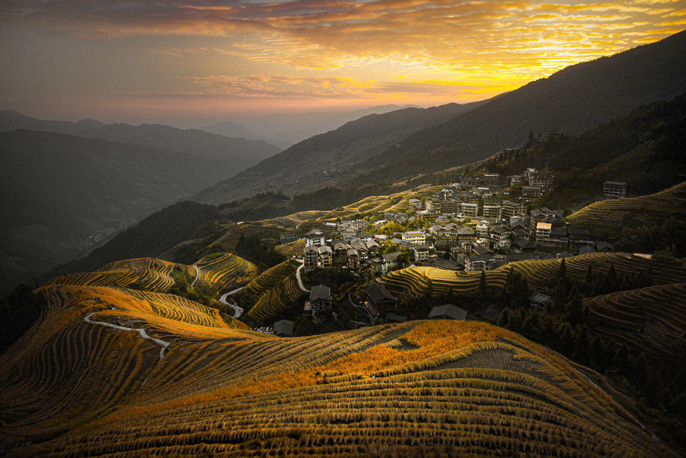 平安寨:它的梯田规模虽然略小,但是精致,拍照很容易出片,它有两个观景台,九龙卧虎和七星伴月,两个观景台并不太远,一天就能逛完,在这个寨子拍日出的地点最好是七星伴月,拍日落 的地点就是 九龙卧虎,新手小白也能出大片。