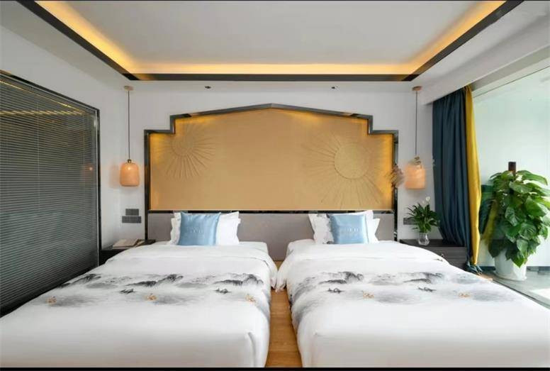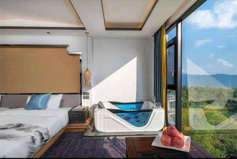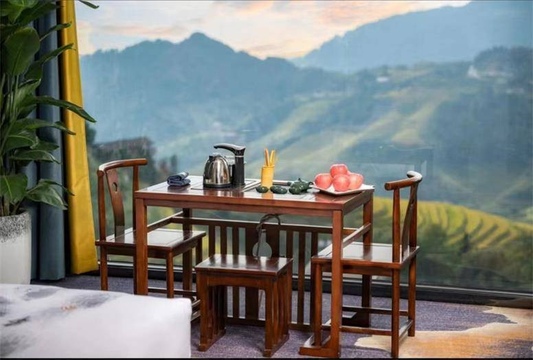 所有酒店房屋都配备超大落地窗以及高档茶桌茶具。现代化的房屋配置及细致周全的服务。