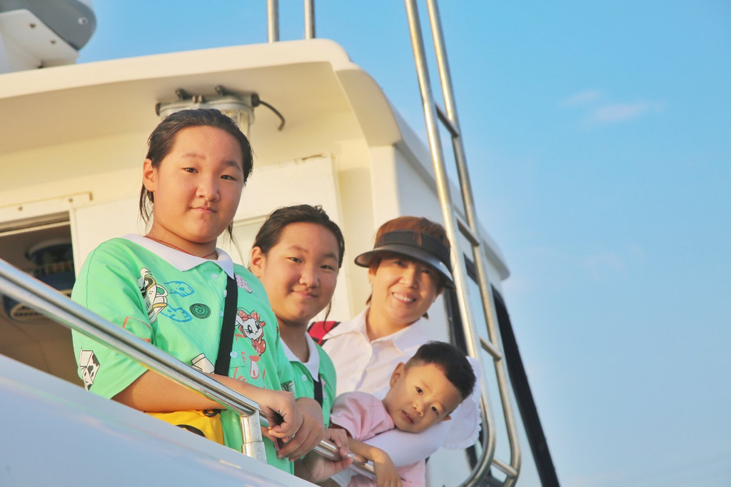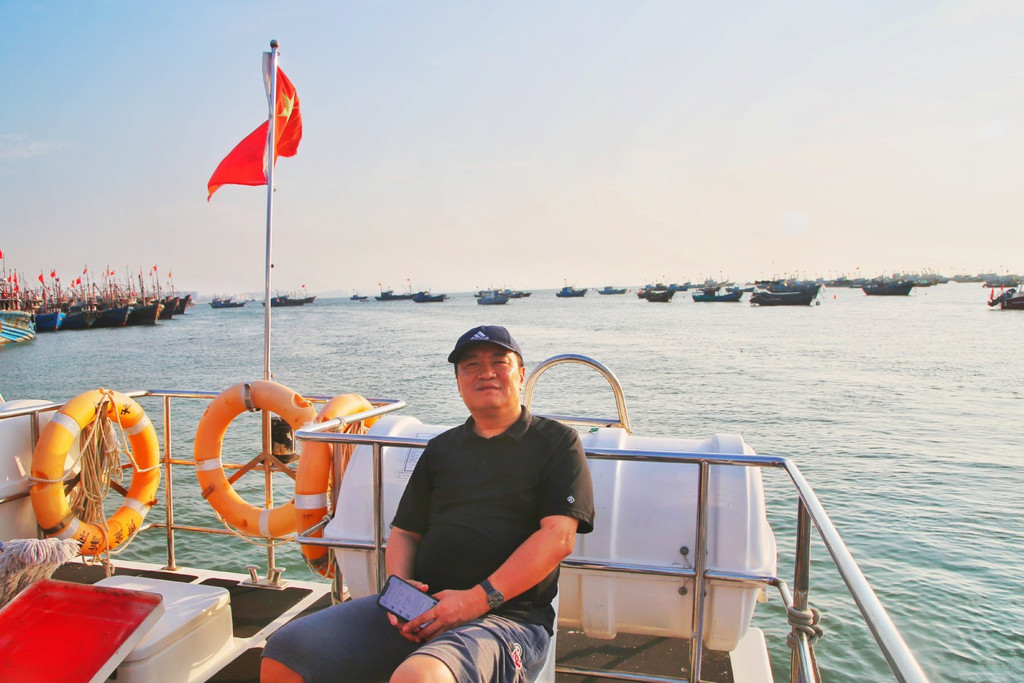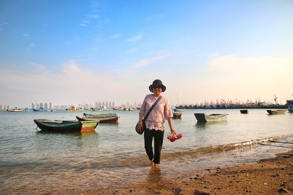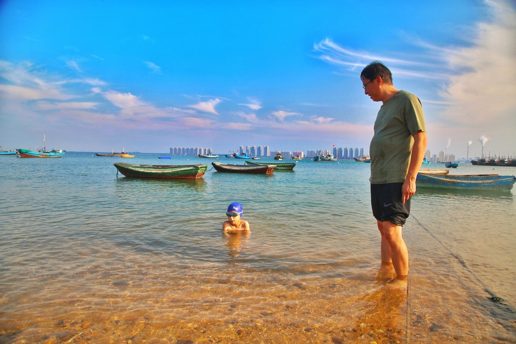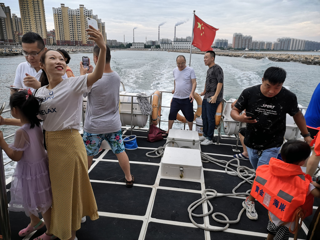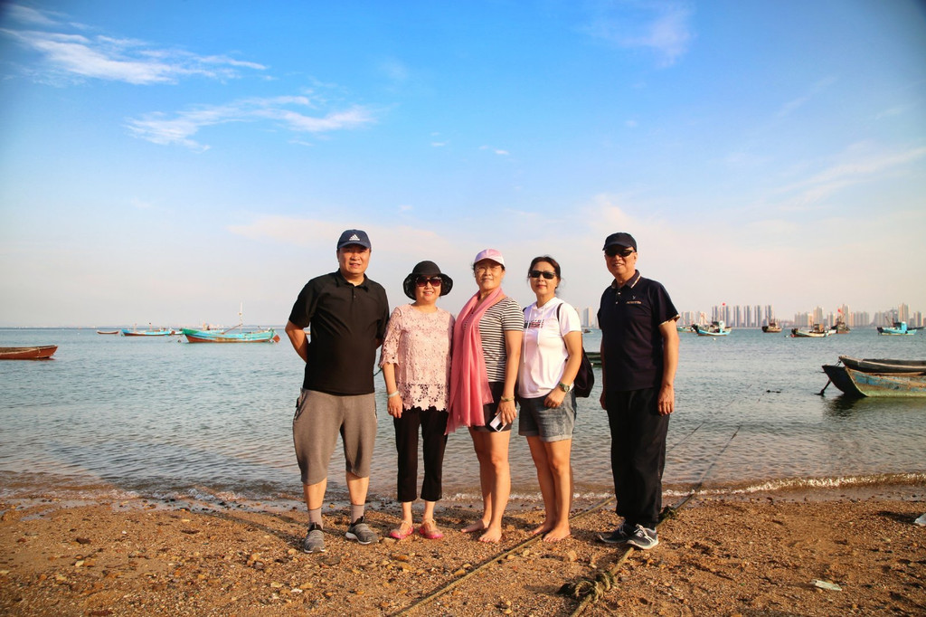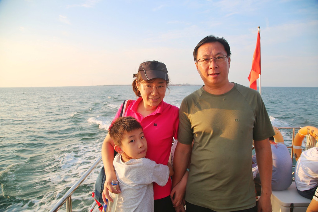 短暂午休后出发前往桑岛,每次到海边都特别的放松,整个人沉浸在海天之间。大海带给人的视角冲击力和心灵上的共鸣,是世界上其它任何事物都无法比拟的。一旦心中有了大海的影象,想往大海,怀想大海,再长的江,再深的河,已装不下追梦海洋的心。地理学的不太好,作为吃货,只知 山东 龙口 产粉丝,来到 烟台 后才知道 龙口 就在 东海 之滨, 山东 半岛 东北 角,再细细品味这地名, 龙口 者龙之口也,那种气吞山河的水龙王般的海之气象,足以震撼你想象的空间。尤其听闻 龙口 桑岛的子岛——无人岛,风光更是不亚于 马尔代夫 ,退潮的时候还能赶海,抓到一些海货。孩子们感觉很新鲜,玩的不亦乐乎。