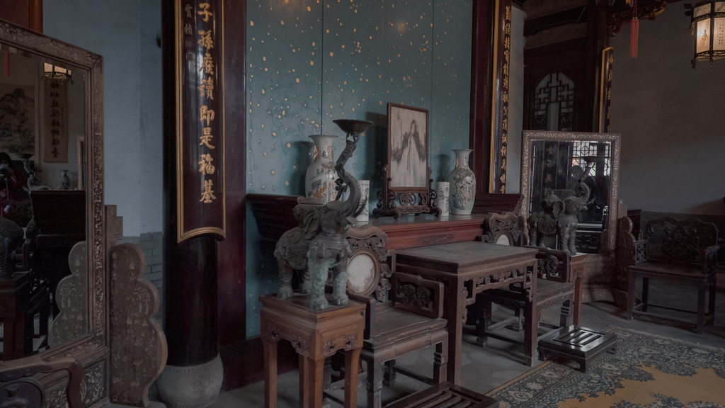 丁元沂是从清朝的康熙年间开始发迹的,有钱之后,丁家广征邑内外能工巧匠,在黄县城里开始营造自己的宅第,建筑格局按京城府第的“四合院”,结合胶东半岛民居的神韵,据说当年共盖了2700余间房屋,全部为五进四合院落,木构架结构,硬山坡顶,屋面覆以仰合鱼鳞青瓦,主体建筑做工精细,用料考究,雕梁画栋,涂色漆金。即便现在看来,整个故宅的豪华程度还是令人咋舌。