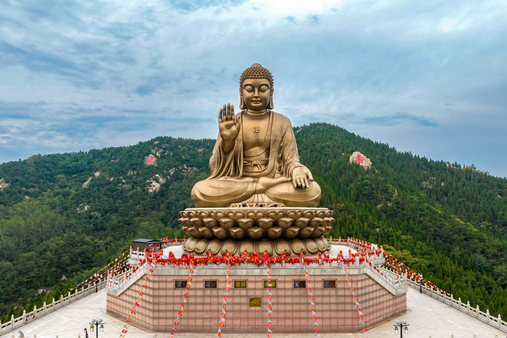 原名石泉寺,据县志记载:佛教在唐代时传入黄县,自唐至清,佛教盛行,全县800余村均建有寺庙,境内著名寺庙有三观八寺之说,石泉寺位居八寺之首。 南山大佛 震撼无比的世界第一锡青铜坐佛,大佛高38.66米,重380吨的坐佛像,要登360级台阶的过程中,放下骄傲和浮躁,虔诚与佛相对。
