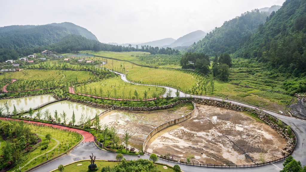 山下片区建设有游客服务中心、特色商业街、美食街、花海石屋别墅区、花果山、九龙潭、九龙桥、停车场等游览配套设施;山中片区建有长1343.8米,高差501.2米,共101个吊箱的观光缆车索道以及全长约4公里的登山探险步道。