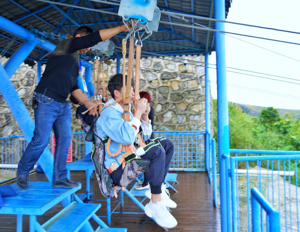 山顶片区建有观景台、3D玻璃桥、高空滑索、高原沙滩、极速滑草、自由滑草、风筝场、跑马场、斗牛场、草原驿站、篝火广场、风情美食街等游乐项目和配套设施。