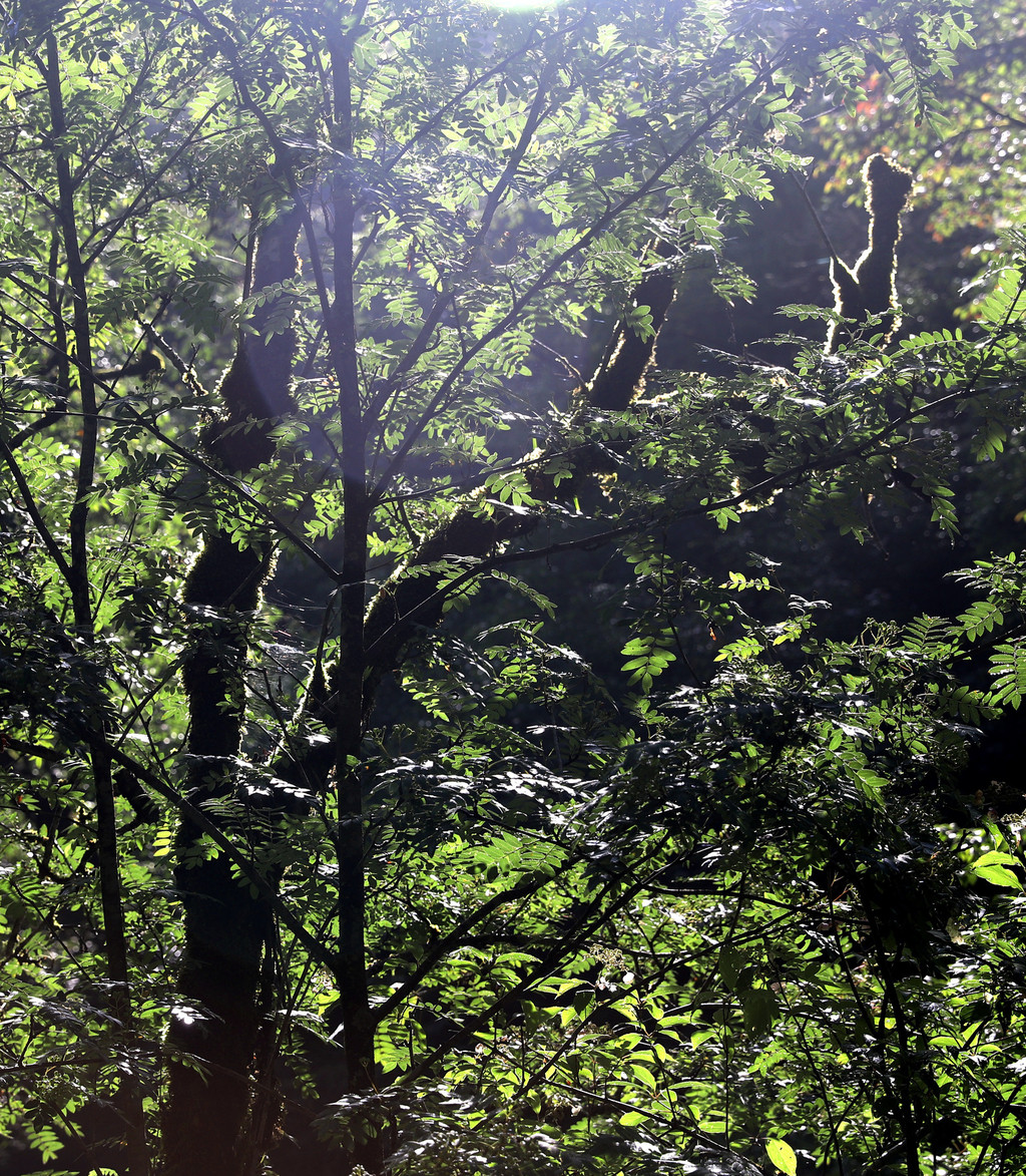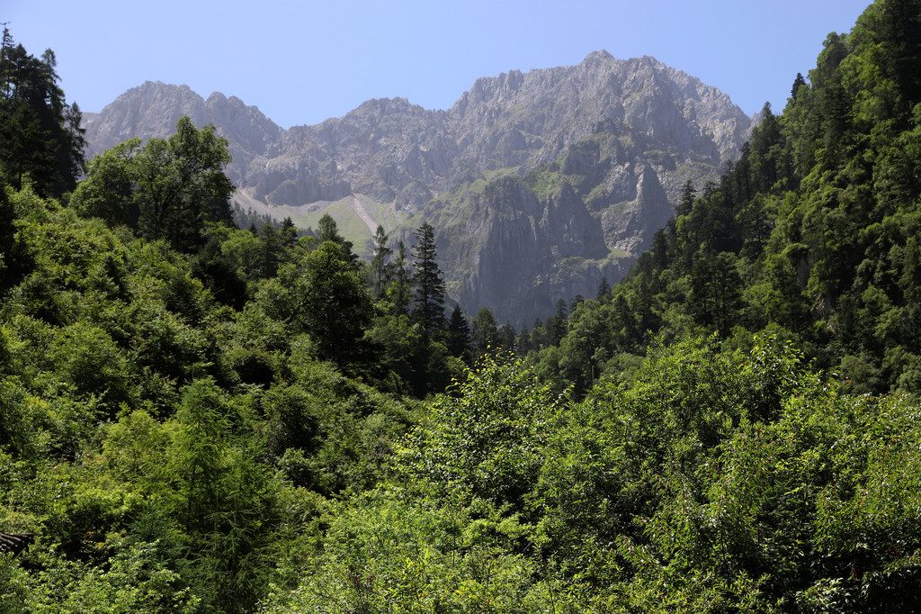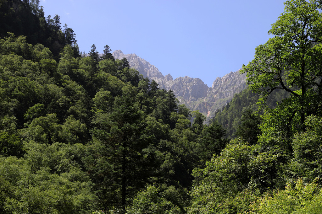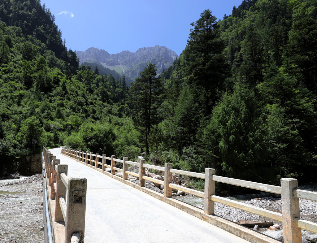 沿途茂密的树林和潺潺的流水以及各种高山花卉