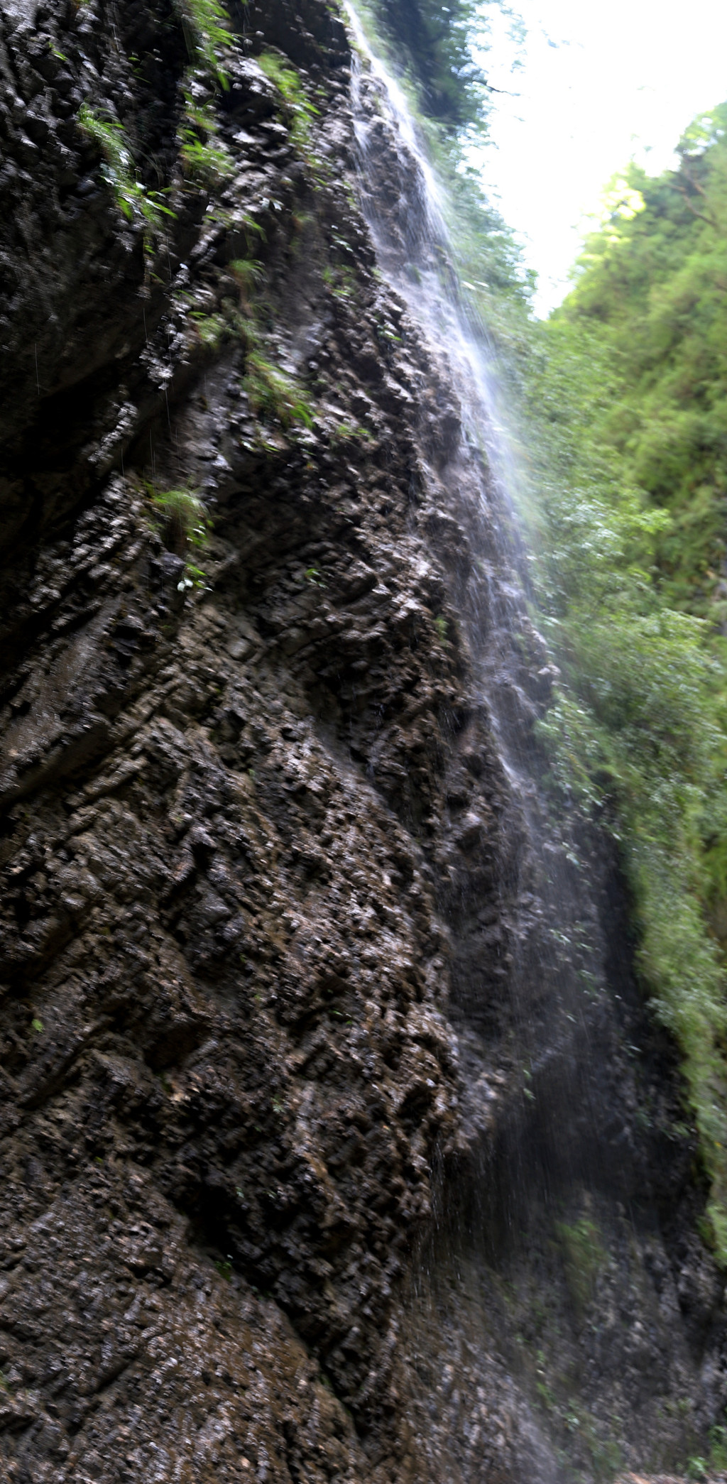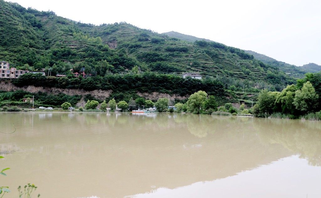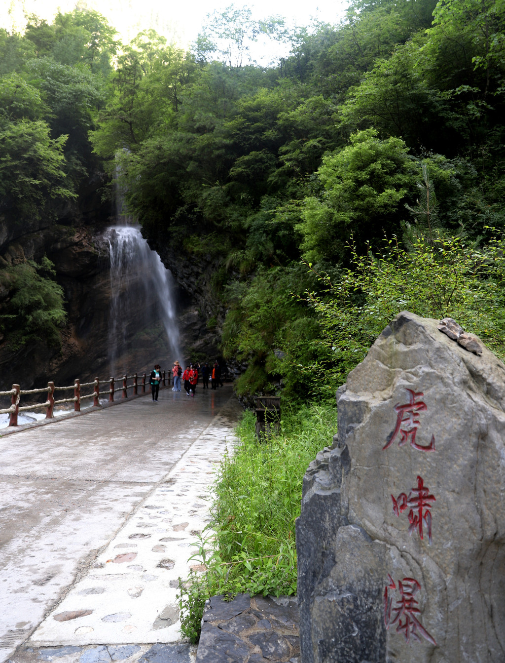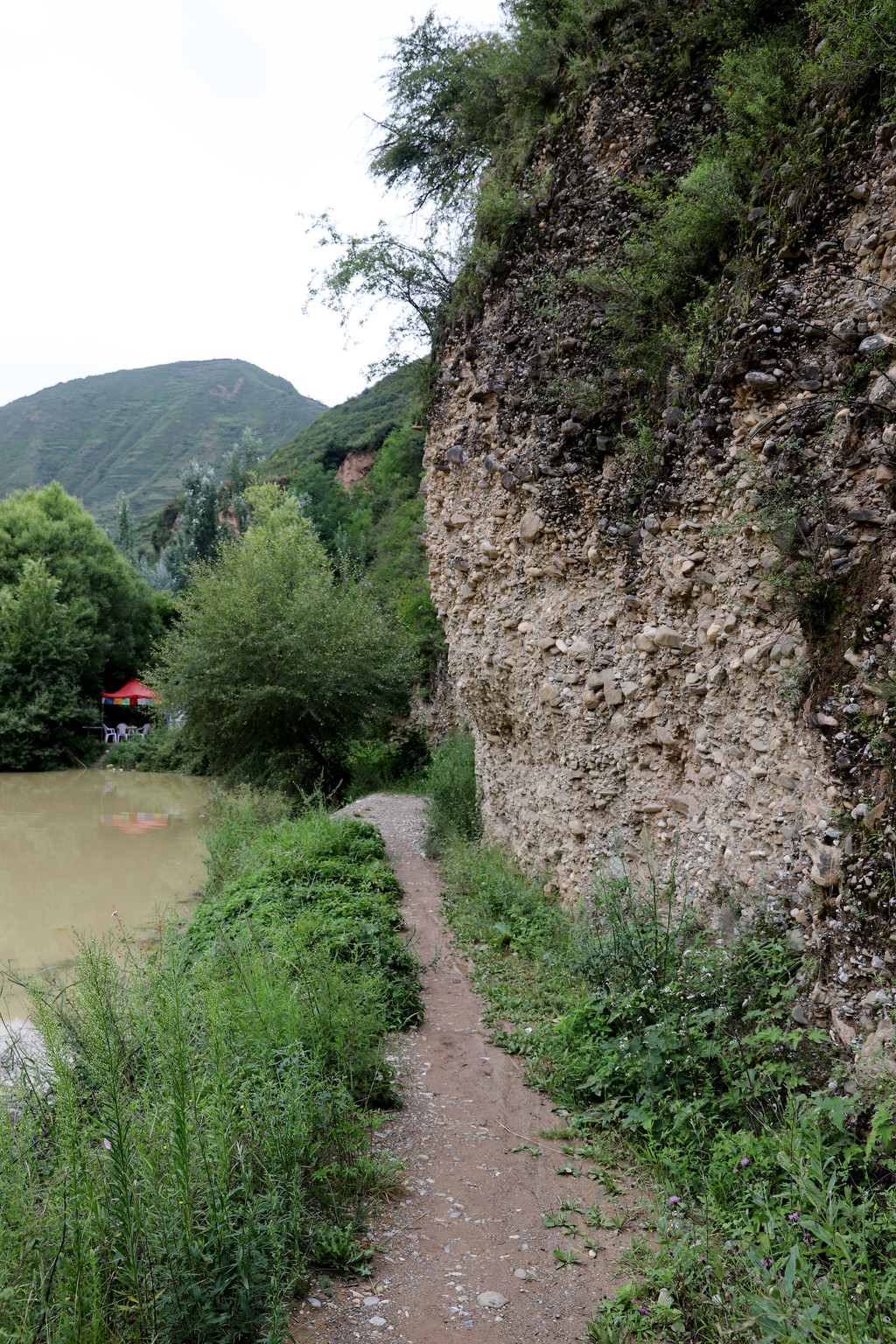 由于下雨,原来所说碧绿的湖水变得浑浊,沿着山边的小路作了一次野外徒步,虽说不太惊险,但也有令人不知前路是否可行的担扰,好在此时跟上了两位游人同行,于是相互鼓励,不走回头路,硬着头皮沿着一边是陡峭的山峰、一边是急速流动的湖水夹住的小路前行。这一走不要紧,一直走了两公里左右才看到一座桥梁,这才松了一口气,过桥走上了返回景区大门的公路。这一看一走,足足又用了两个小时,算是官鹅沟游览的预演吧。