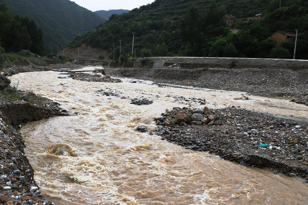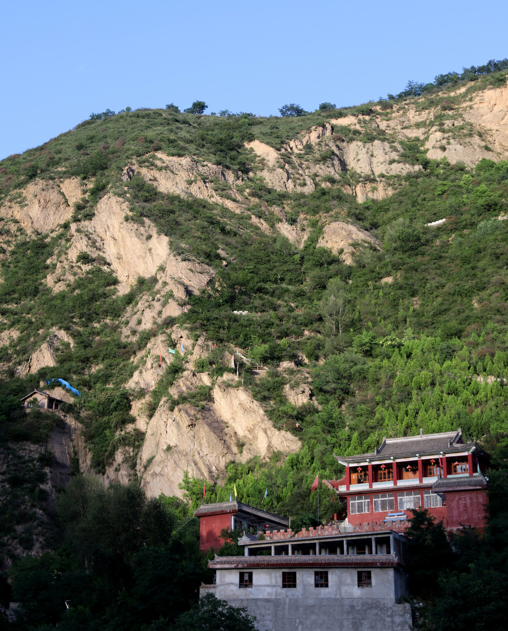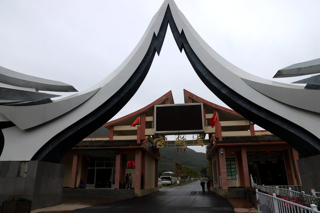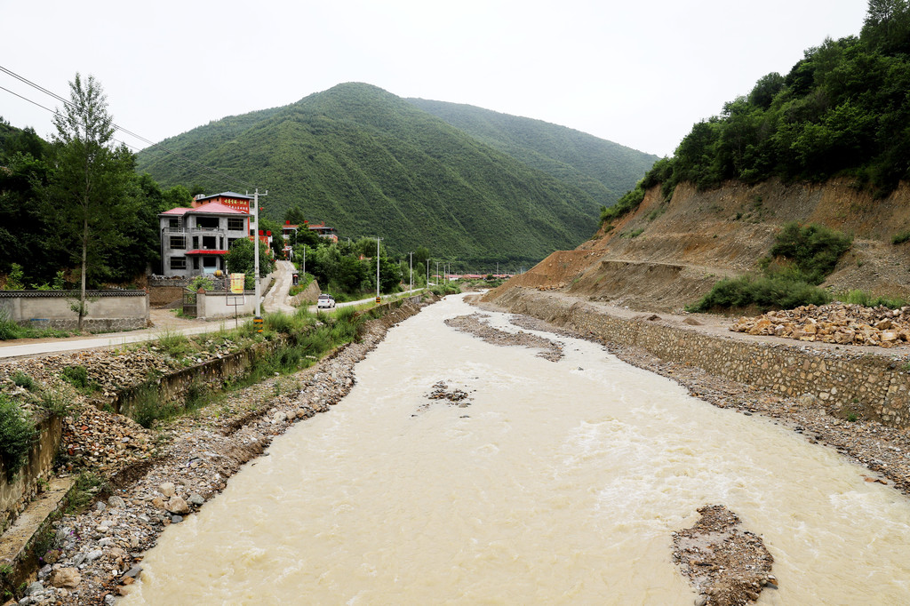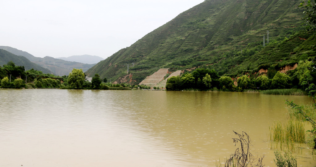 由于下雨,原来所说碧绿的湖水变得浑浊,沿着山边的小路作了一次野外徒步,虽说不太惊险,但也有令人不知前路是否可行的担扰,好在此时跟上了两位游人同行,于是相互鼓励,不走回头路,硬着头皮沿着一边是陡峭的山峰、一边是急速流动的湖水夹住的小路前行。这一走不要紧,一直走了两公里左右才看到一座桥梁,这才松了一口气,过桥走上了返回景区大门的公路。这一看一走,足足又用了两个小时,算是官鹅沟游览的预演吧。