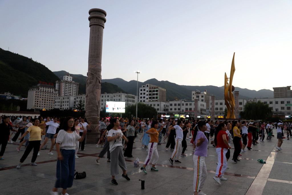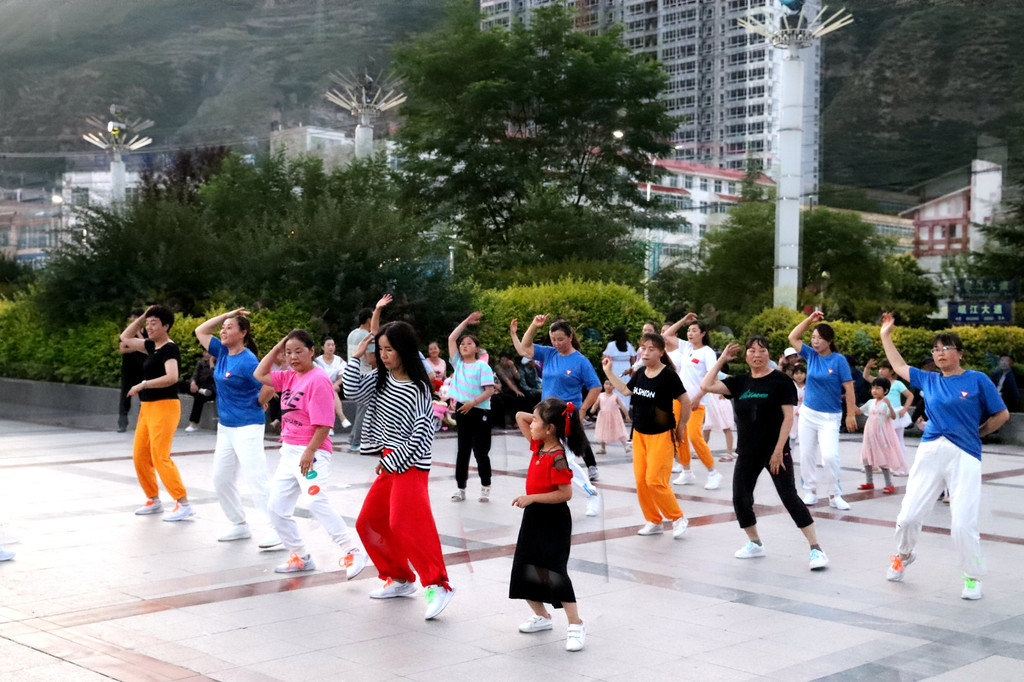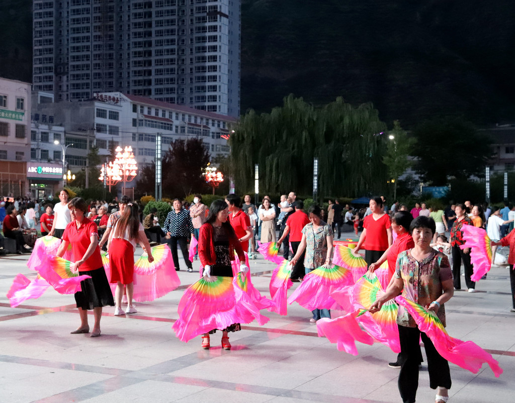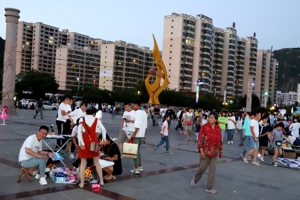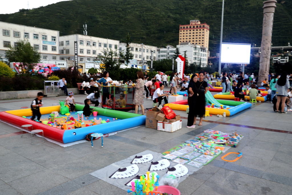 时代广场是宕昌县城晚上最热闹的地方,是市民休闲娱乐的地方,广场内有跳广场舞、交谊舞和扭秧歌的大妈,有摆摊的小贩,有纳凉聊天散步的市民,他们各取所需,充满着轻松祥和的气氛。