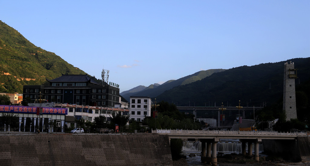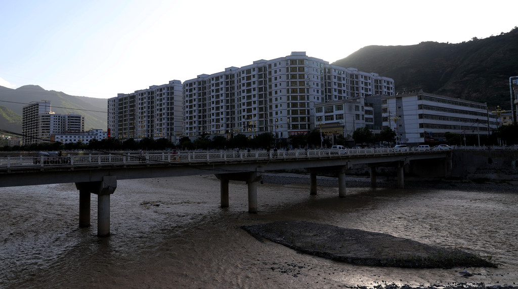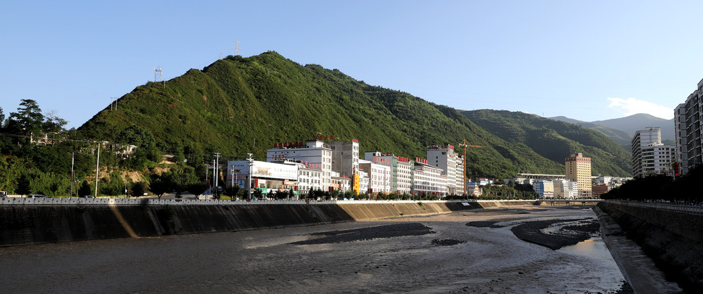 岷江穿城而过,将宕昌县城一分为二,左边是老城区(沿流水方向),右边是新城区。但由于岷江两边均有山峰,平地不多,看来城市只有沿江发展。