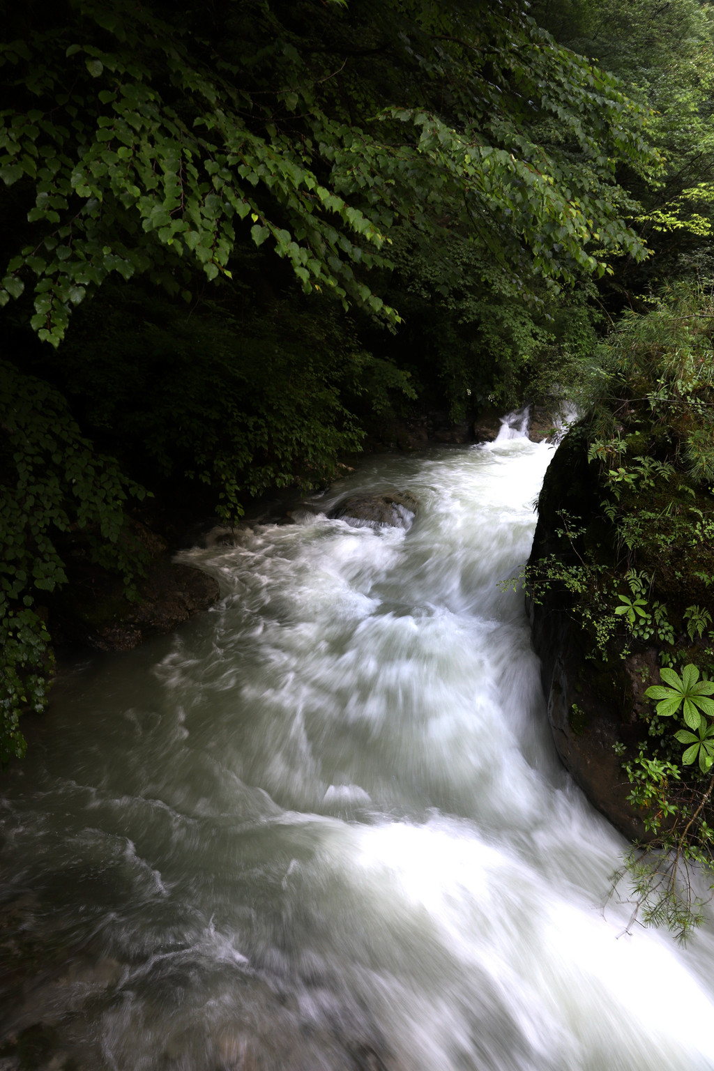 景交车行驶了20分钟,到达官珠沟通天门游客服务中心的景区大门,进大门后沿路上行。一条是水泥路,一条是木栈道,我选择了木栈道前行。沿途溪水奔流而下,树木成荫,非常清凉,确实是避暑胜地。由于前两天下过雨,空气特别新鲜,呼吸着饱含负氧离子的空气,非常惬意。为预防新冠疫情,保险起见,乘景交车时还是把口罩戴上了,一下车就取下了口罩,众多游客基本都没戴口罩。