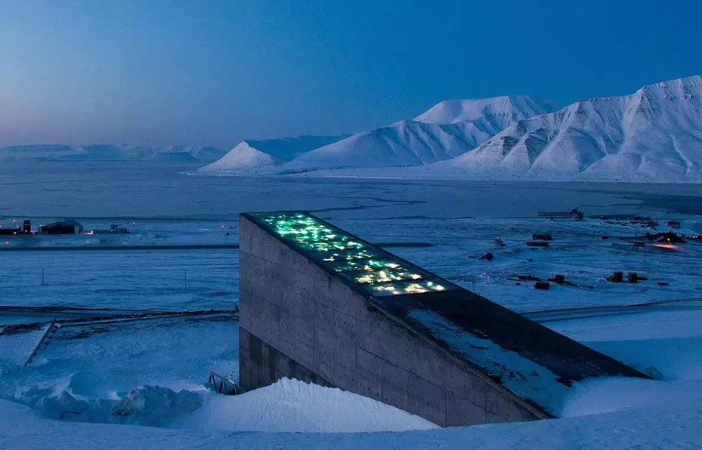 著名的全球末日种子库就坐落在这里。当飞机到达斯瓦尔巴群岛首府朗伊尔城,一出机场就能看到,在山上的末日种子库。这里有全世界的各种种植植物的种子,储存在-18°的冰封库房里。这里可以抵御核武器攻击,以及地震、小行星撞击地球等自然灾害的冲击。目前末日种子库不对外开放,因此没有到里面参观。