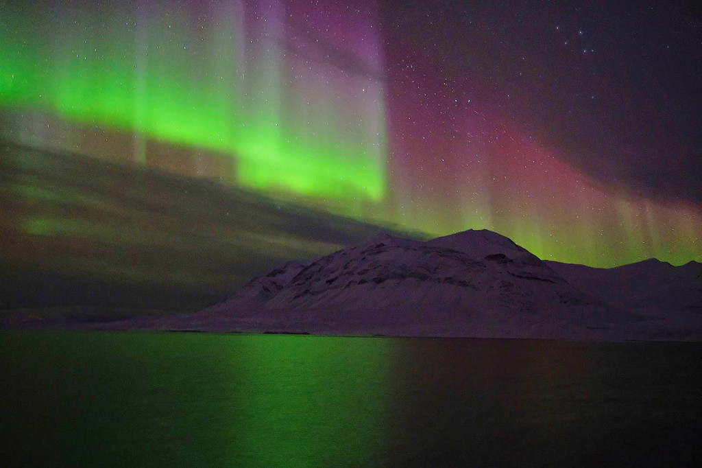 极光相随——朗伊尔城和斯瓦尔巴群岛是观测极光最好的地点,这里位于北极圈内,可以乘坐探险船在峡湾的水面夜宿,也可以在朗伊尔城欣赏极光。2018年10月7日至15日,我们在斯瓦尔巴碰到极光爆发,极光在空中飞舞,让我们感觉到震撼。