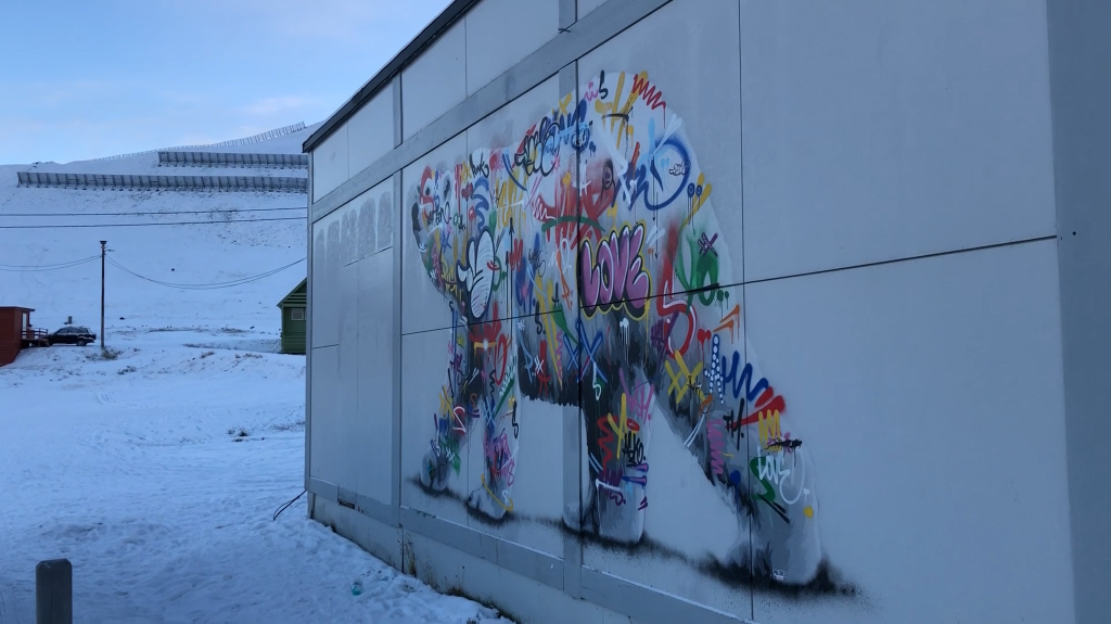 尽管北极熊非常危险,但是北极熊仍然是这里最受欢迎的动物。因此在市中心矿工雕像的旁边,有一堵墙上画了一只彩色的北极熊,是大家喜欢打卡的地方。