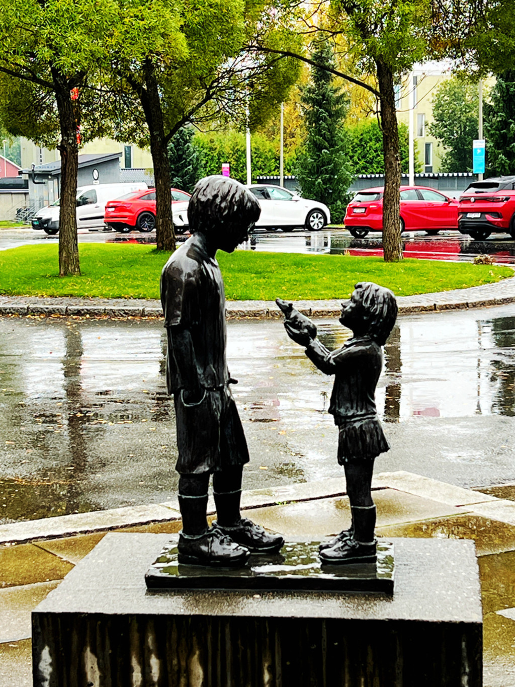 与国内不同,这里公交车双向行驶的路牌都在同一地点。等来第一趟车是位男司机,告知他的车方向相反;第二趟车方向正好,是个女司机。在询问坐车怎样付费时,她说不收欧元,只收 挪威 克朗,也不能刷卡。可是我们只有欧元。她笑笑让我们先上车。此时已过秋收季节,但田野里秋收后的尾茬依然那样黄灿灿 。到站了,下车时她竟然让我们免费离开,提醒我们换钱返回时使用。我们遇上了最暖心的 挪威 人。