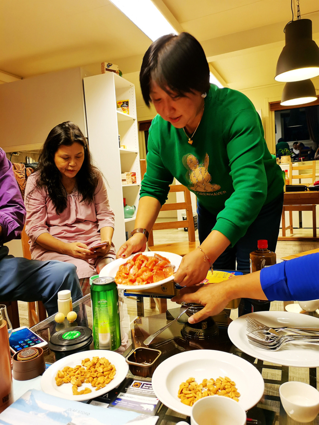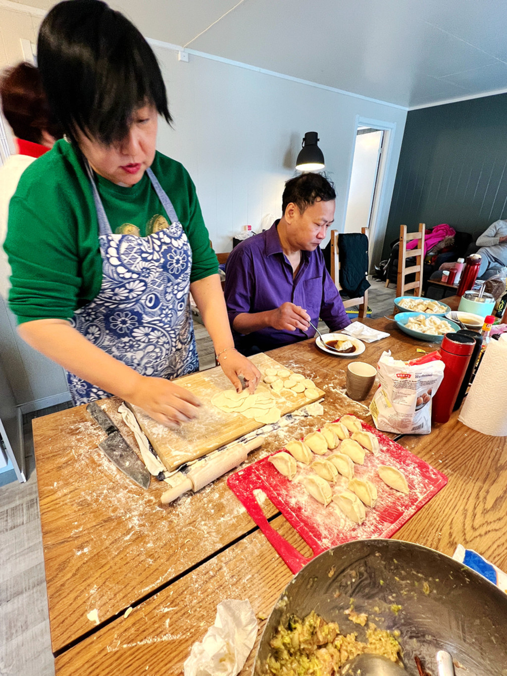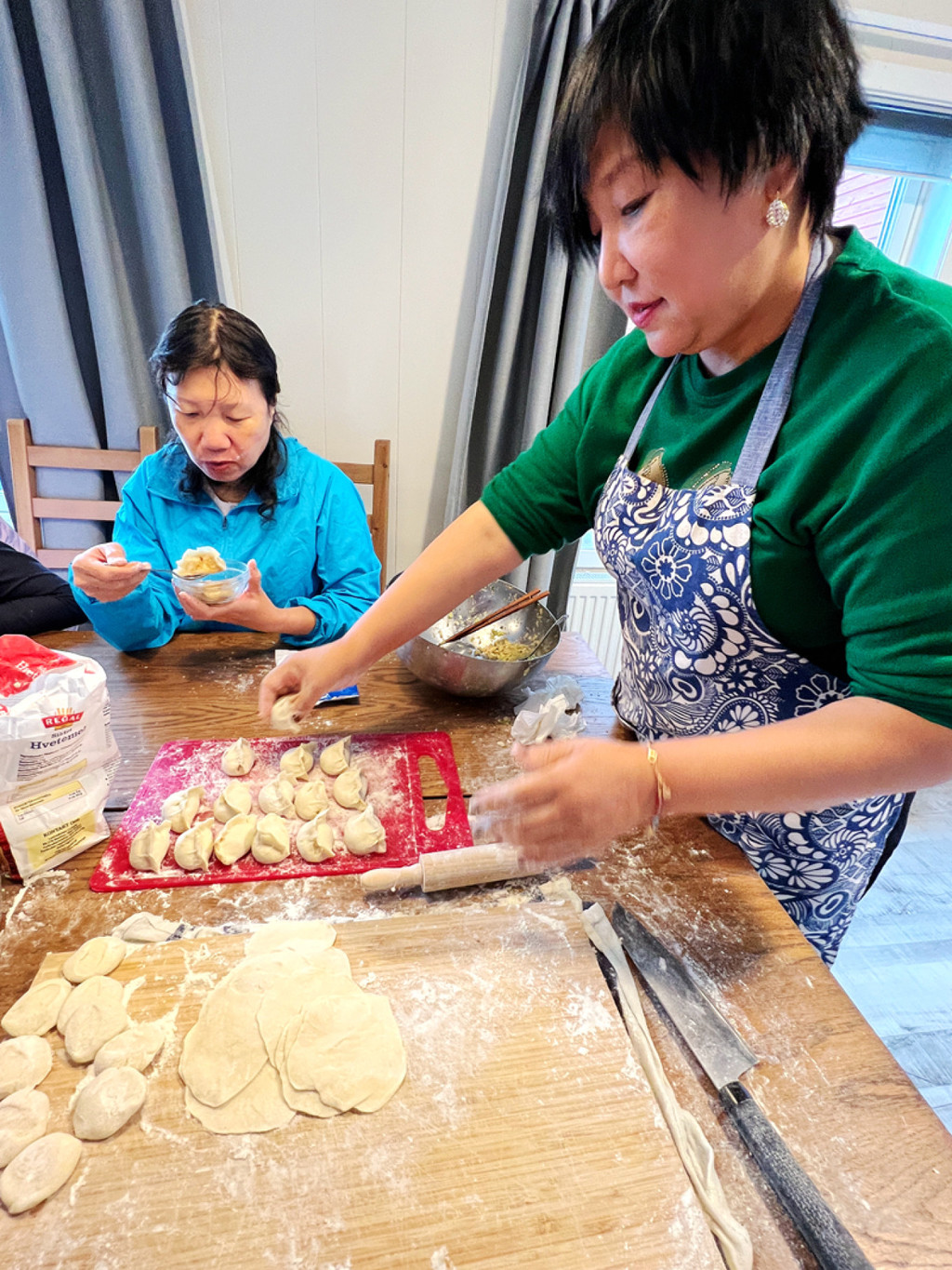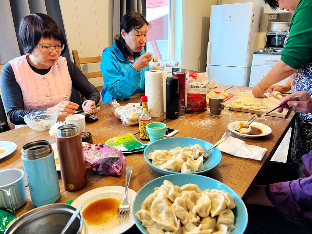 前一晚小苏就准备好了肉馅,今天配上大白菜,地道的大白菜肉馅 北京 饺子呼之欲出。City Walk 回来后,她和面擀皮,动作麻利,几位 广东 团友笨拙地一个个包着,速度就是赶不上她。最后她大显身手包出皮薄馅多的地道 北京 饺子,让我们在异国他乡世界最北的城市吃上了正宗的 北京 饺子!非常感谢她的勤劳付出。