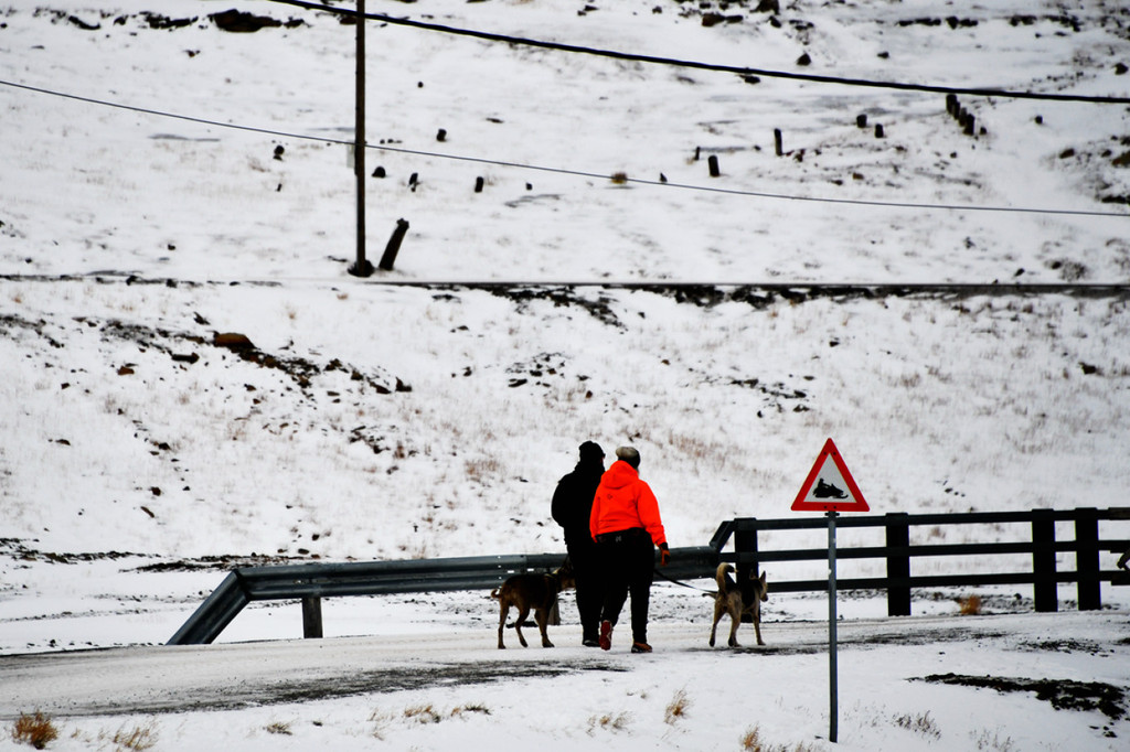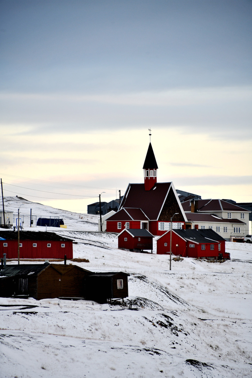 穿着羽绒行装,我们出了门。大地一片白茫茫,只有数栋外表颜色鲜艳的木屋子零零散散洒落在白色的地面上,也许是为了苍凉大地增添一些色彩。这里安静极了,几乎见不到行人,见不到车辆,好像与世隔绝的遗世孤岛。真是一个特别的地方。