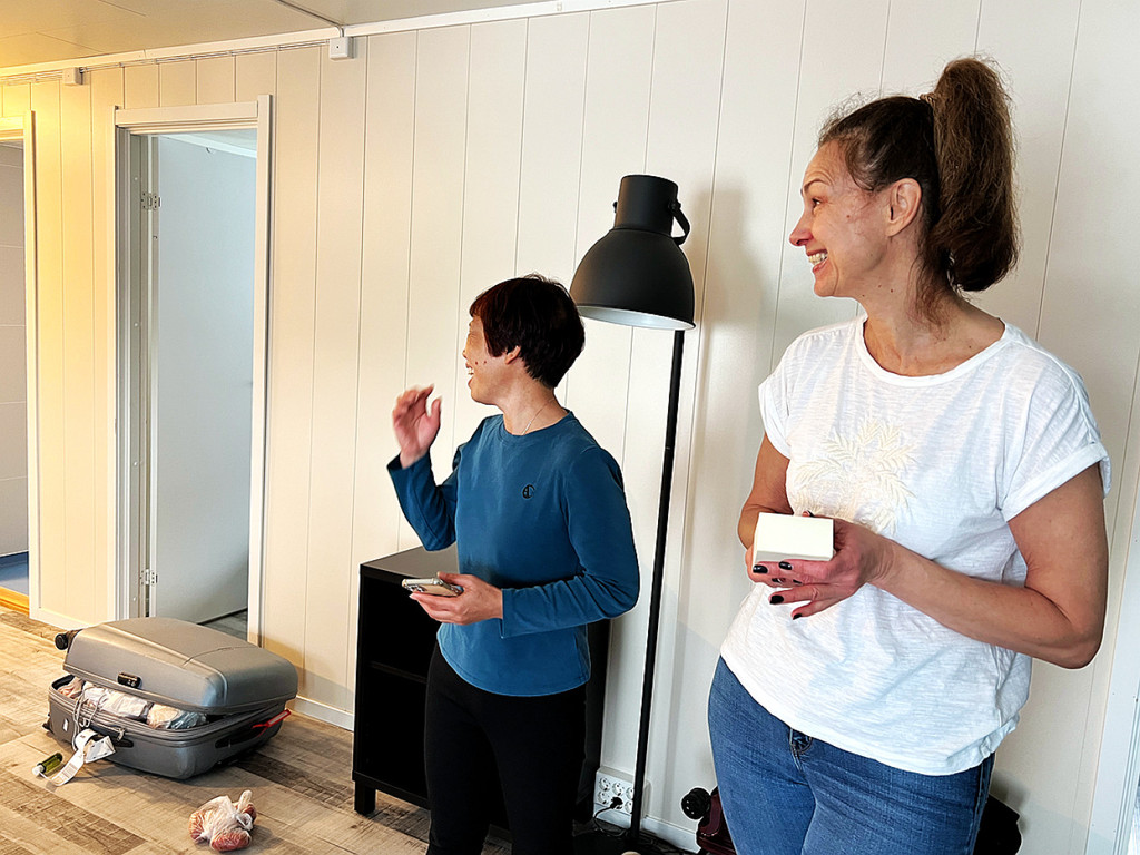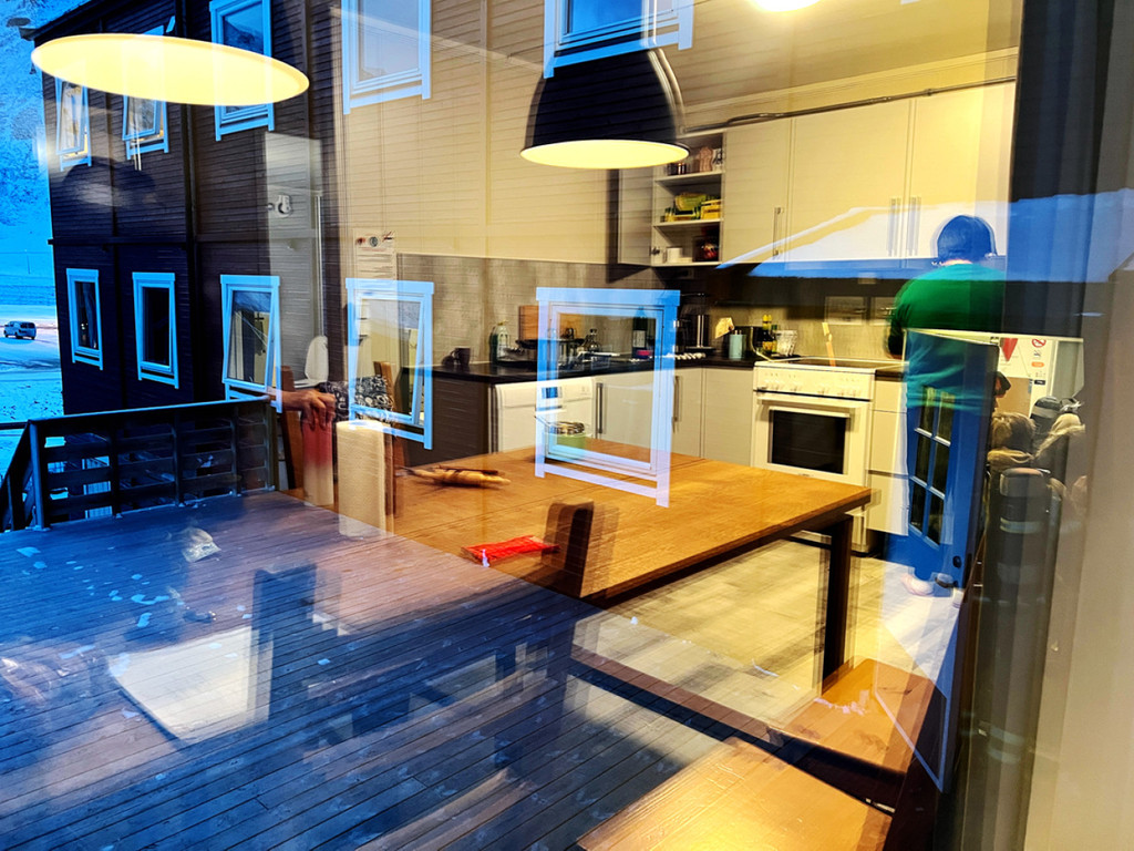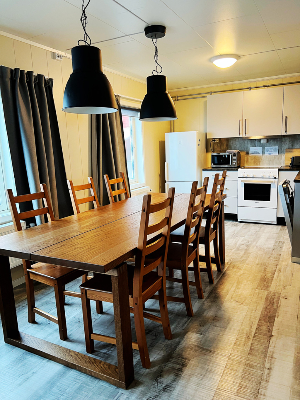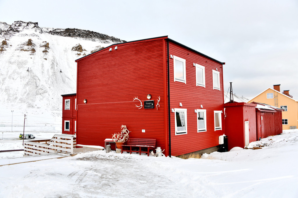 提前在岛上租了公寓Haugen Pensjonat Svalbard,一座红色小楼,里面白色淡雅。房东早就等在门口,让我们脱鞋才能入内(防止带雪进入弄湿弄脏地板)。小楼三层,有不同的住房规格,我们选择了两个三人间,两个双人间。公寓里配有两个大大的公用厨房,里面锅碗瓢勺餐具等厨房用具基本齐全,这是最令我们开心的。可以自己做饭了!也就几日,大家的 中国 胃已经开始闹意见了。