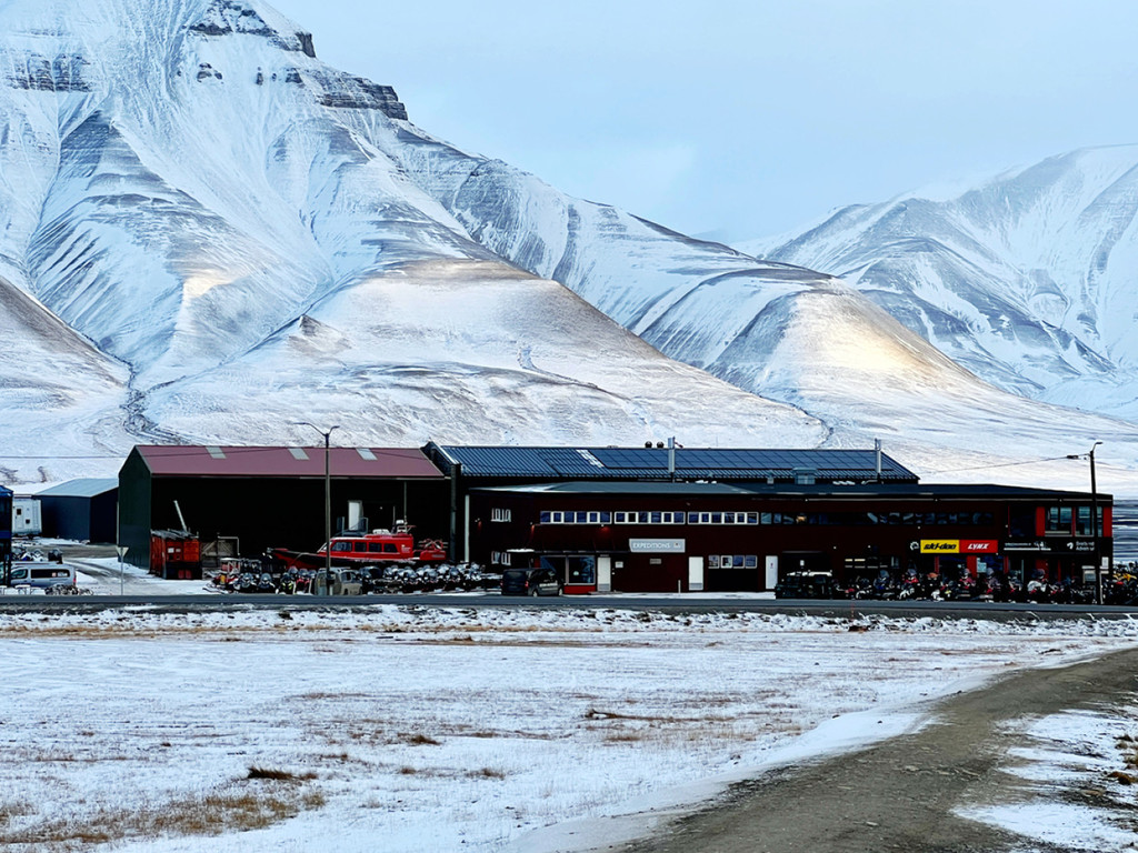 经过几个小时飞行,当飞机缓缓降落时,映入眼帘的是巨大的白色山脉和大海,一个令人精神为之一振不同寻常的景色。我们来到了一个奇妙而又特别的地方,我们 北欧三岛 行的第一岛—— 斯瓦尔巴群岛 ,其首府所在地—— 朗伊尔城 。