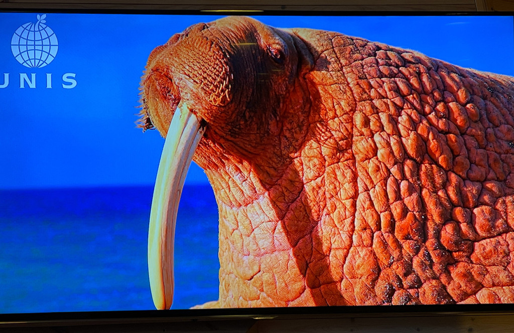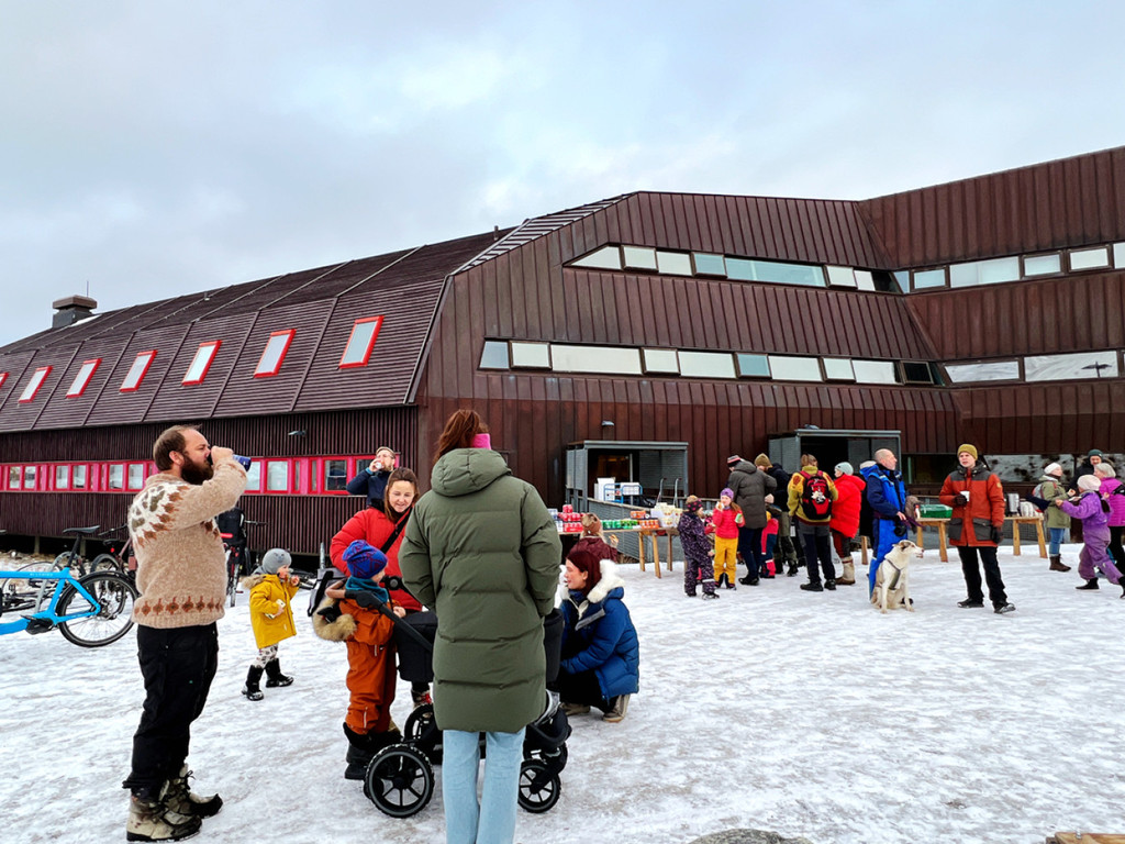 斯瓦尔巴博物馆似乎不开门,旁边的联合国国际学校人特别多,周六这里似乎在准备一场活动,室外有乐队,室内有讲座,墙上还有介绍有关知识的图片幻灯,一些大人带着孩子来到这里,这里是一个学习有关 北极 知识的好地方。
