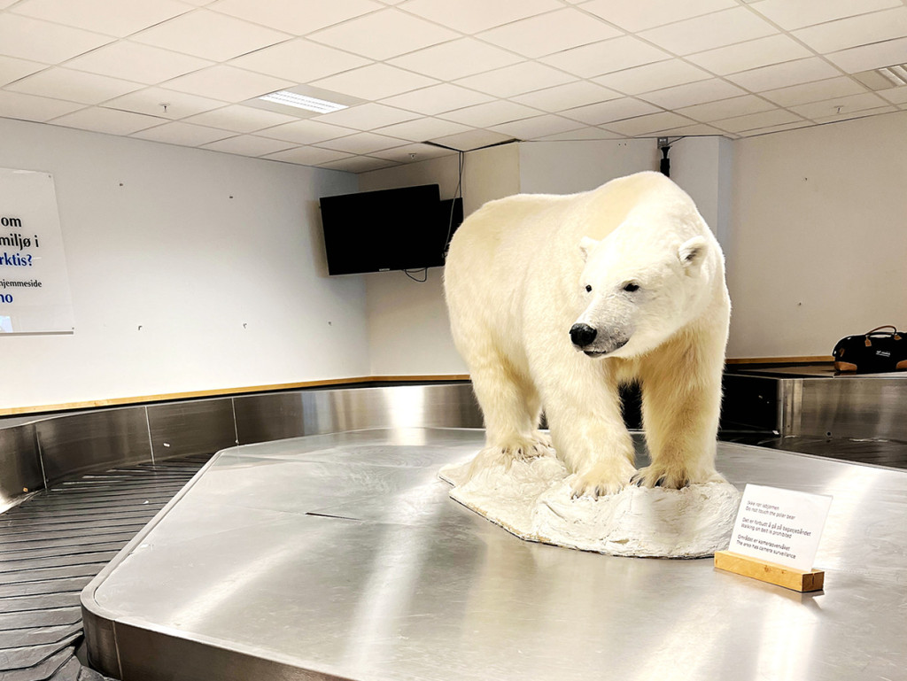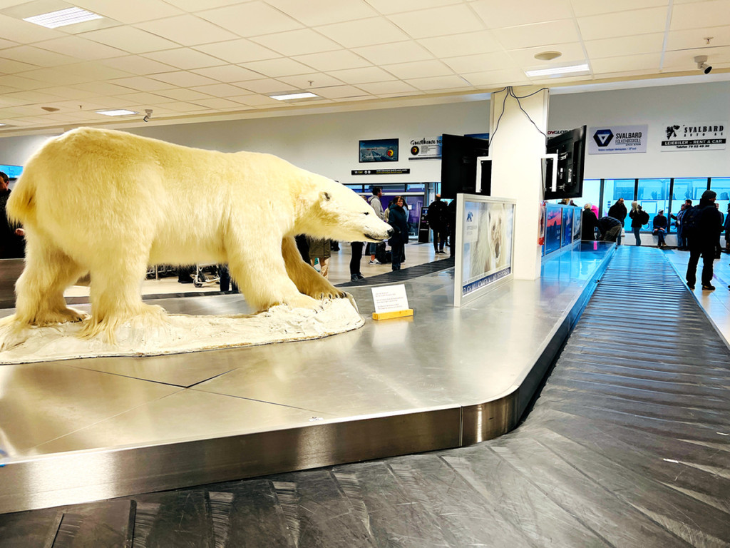 北极 熊是 斯瓦尔巴群岛 的标志,它属于完全被保护动物,也是一个对人造成危险的动物。从踏入这块土地开始,就随处可见 北极 熊的影子。一头白绒绒的 北极 熊标本矗立在行李带上,用它咪咪的小眼睛看着每一件行李从眼前滑过。地标标示牌下有一个 北极 熊出没的红色三角形警告牌。似乎都在告诉人们,这里曾是 北极 熊的家园。是人类打破了这里的宁静,逼迫着它们不得不远离。