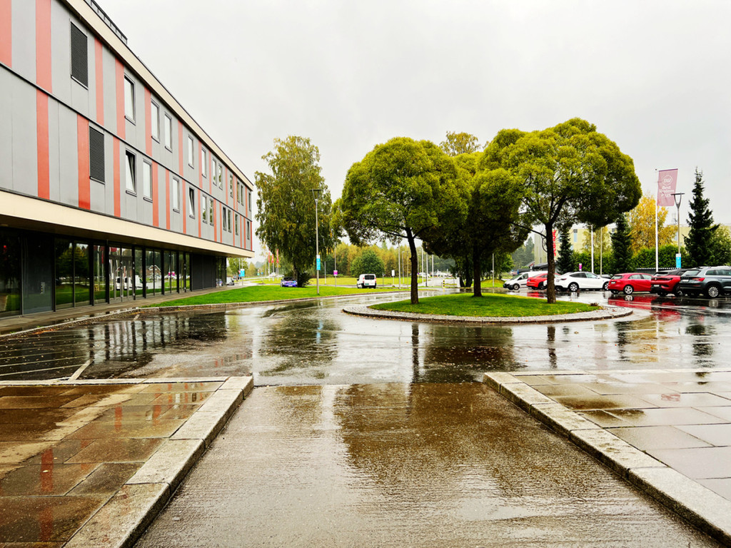 此时的 挪威 秋色正浓,阴雨天让车站旁的几棵小枫树叶子黄里透红。